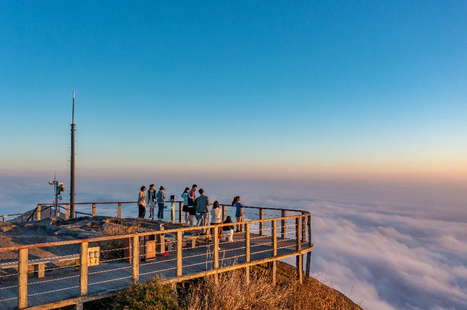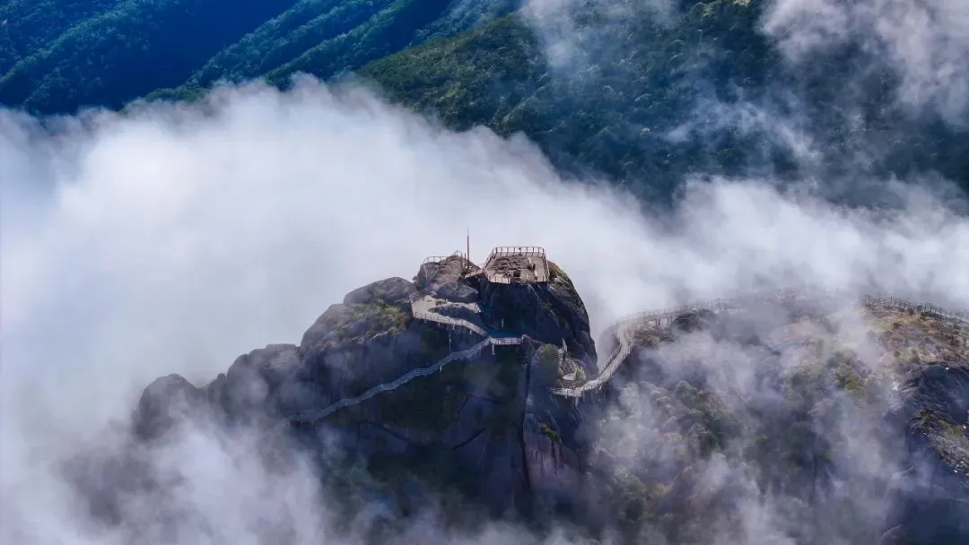 攀登“八闽观日第一峰”,极目远眺,峰峦云海、蓝天灿日交相辉映,仿佛身置天上人间!
