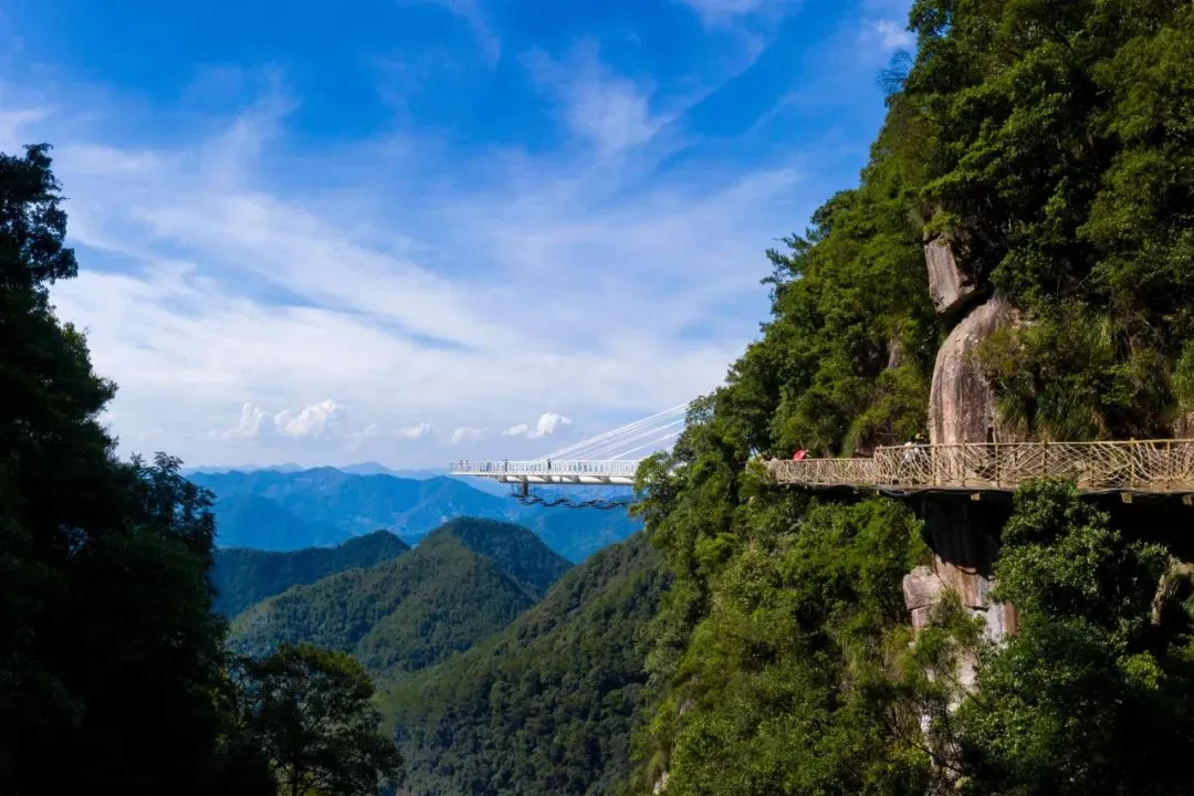 抵达索道上站,中餐后(费用包含)换乘观光车前往【石牛山主峰】,途中参观石壶祖殿是千年的道教文化圣地,是闽台两地法主公文化的发源地。沿路上可以看到很多形状各异的巨石,有法网、金交椅、飞凤石、擎天巨拳、骆驼石、船帆石、海狮听潮、巨蟒下山、石牛鼻等,这些石头是水蚀花岗岩石地貌和崩塌堆积地貌构成的,是石牛山特有的地质奇观。【观牛台】是观看主峰卧牛的最佳位置,登上石牛山主峰的峰顶,主峰巨石像一头仰天长啸的牛而得名。这里海拔1782米,有“八闽观日第一峰”的美称,是观日出的绝佳地方,也是拍照的绝佳位置。(途中有2个网红拍照点:云梯&相框)行走过栈道,后适时乘坐观光车到索道上站,搭乘缆车到索道中站,后前往【玻璃观景台“天空之心”】,天空之心玻璃观景台悬空高度314米,桥长度约70米,是景区的网红打卡点。天空之心是观瀑的绝佳位置,可以鸟瞰岱仙双瀑布。从天空之心徒步前往悬崖栈道,悬崖栈道位于岱仙瀑布两侧,从远处看,两边的栈道整体呈一个心形,蜿蜒盘桓在崖壁上,心形栈道全程3000米,单侧约1500米,是中国唯一的心形立体环瀑栈道。走到瀑布底观赏著名的【岱仙双瀑】总落差314米,单级落差达184米,被誉为“华东第一瀑”,是国内难得一见的双瀑。浏览龙潭虎穴、仙女浴池和竹林小栈,在竹林小栈乘坐观光车回到检票口。
