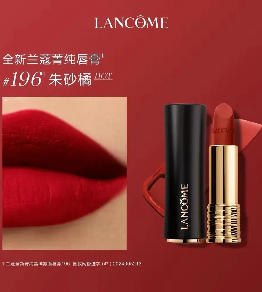 比如这款兰蔻菁纯雾面唇膏#196朱砂橘