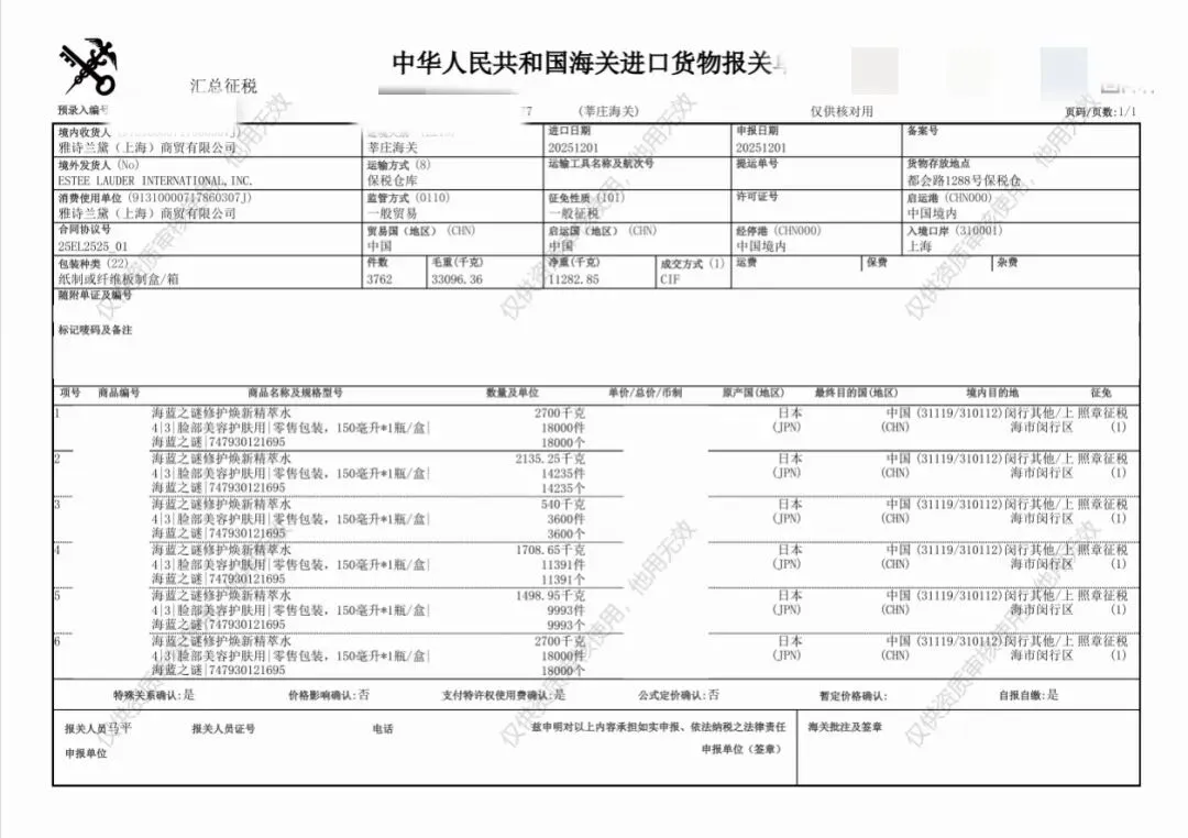海蓝之谜、赫莲娜、SK-II、雅诗兰黛、兰蔻、资生堂、后...共计备货超28万件