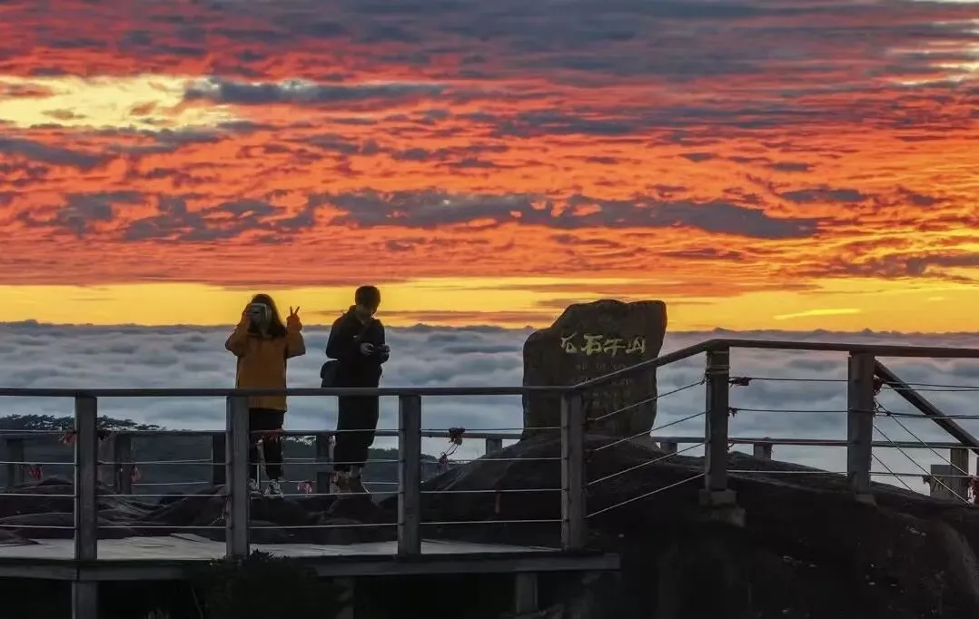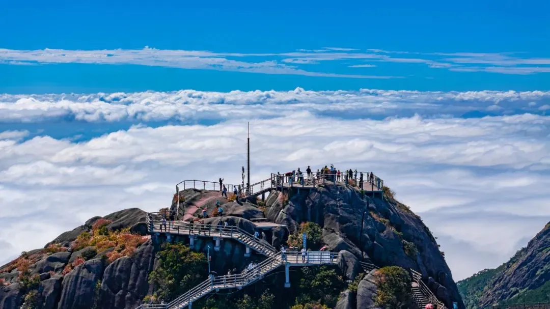 攀登“八闽观日第一峰”,极目远眺,峰峦云海、蓝天灿日交相辉映,仿佛身置天上人间!