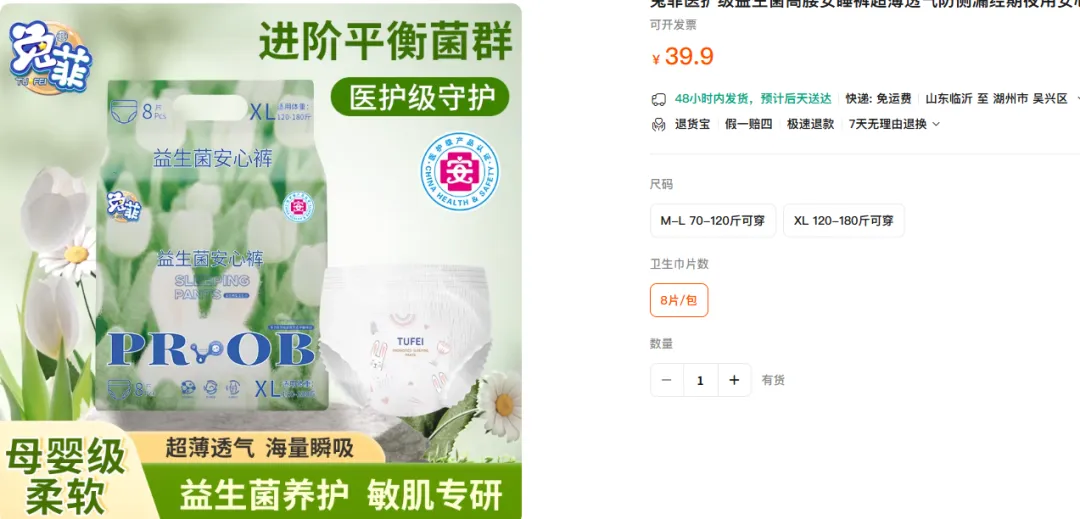 兔菲医护级益生菌高腰安睡裤8条