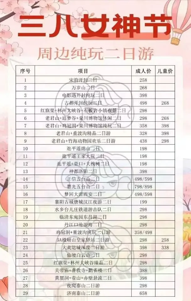 当前位置:首页>美女资讯>三八女神节,明天各线路少量余位