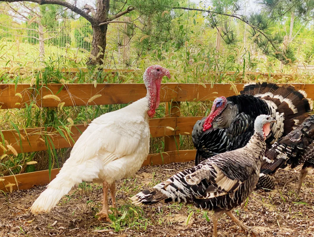 黑色的是闽南火鸡,白色的是尼古拉火鸡