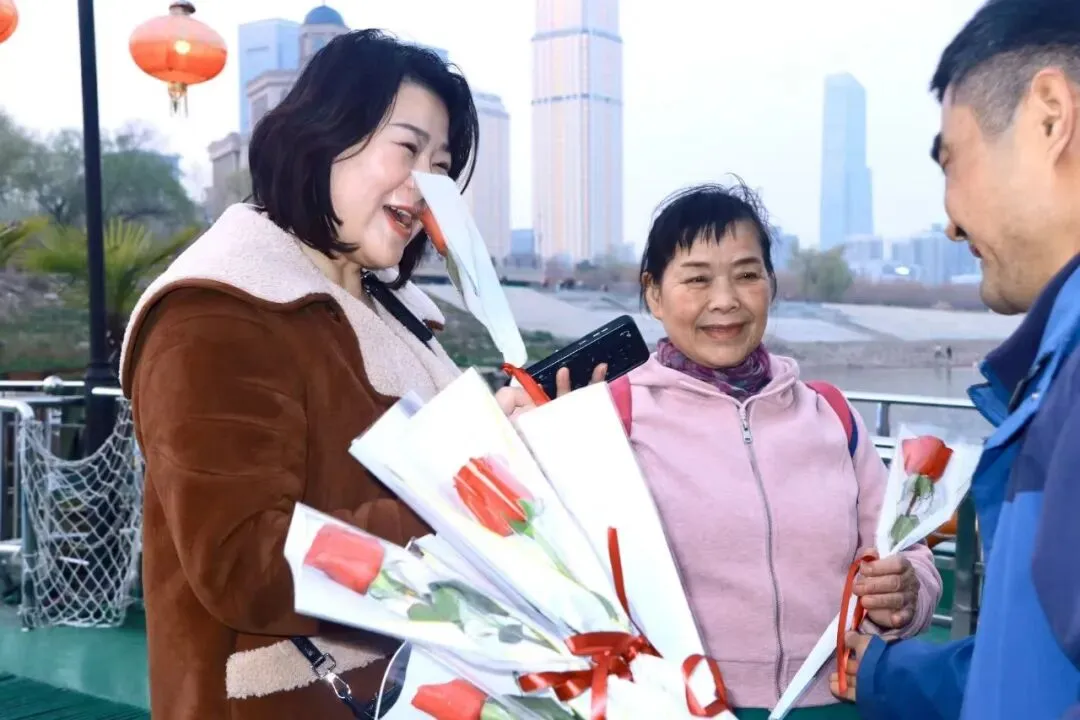 乘船赠花送温馨。3月8日当天,凡在红巷码头乘船的女性游客,均可获赠精美鲜花一支(数量有限,送完即止)