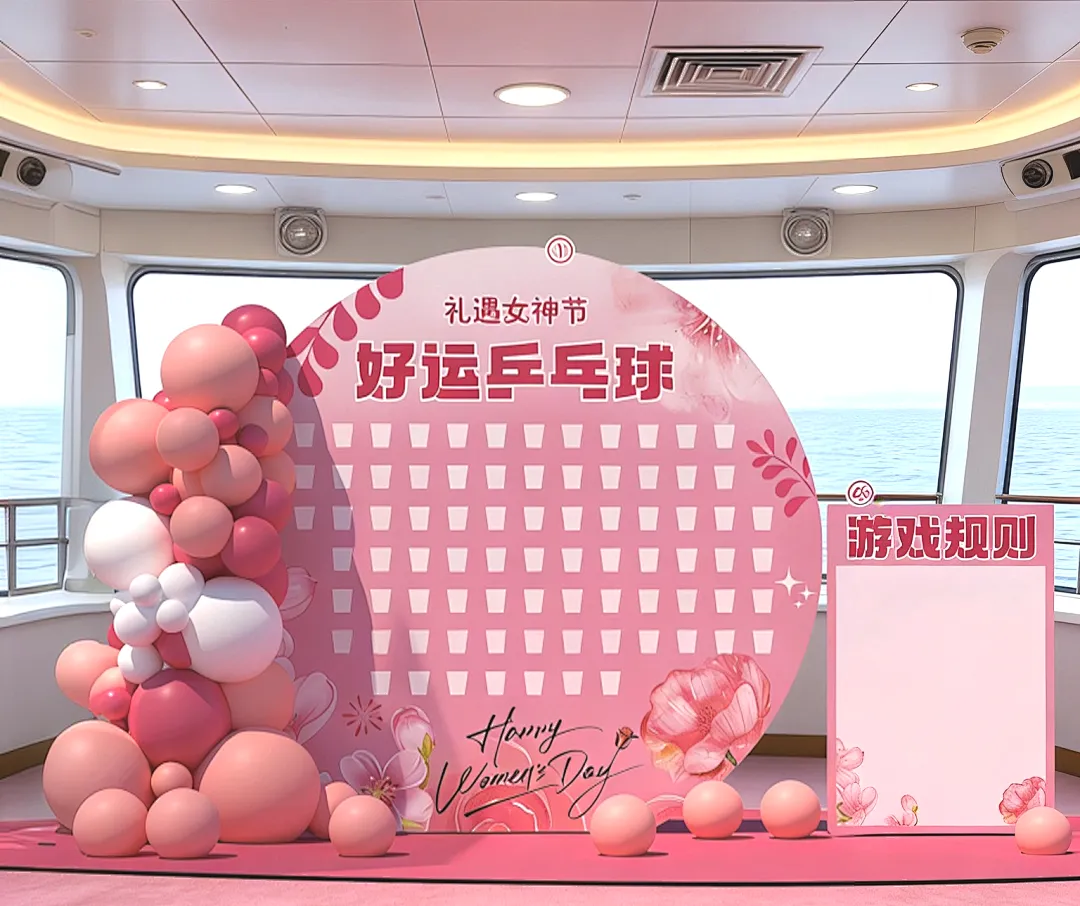 女神节好运乒乓球。3月7日、3月8日凡是在汉阳门码头登船的女性游客均可获得乒乓球一枚,并参与投掷环节,投中即可获得盒内奖品一份。奖品多多,惊喜多多。