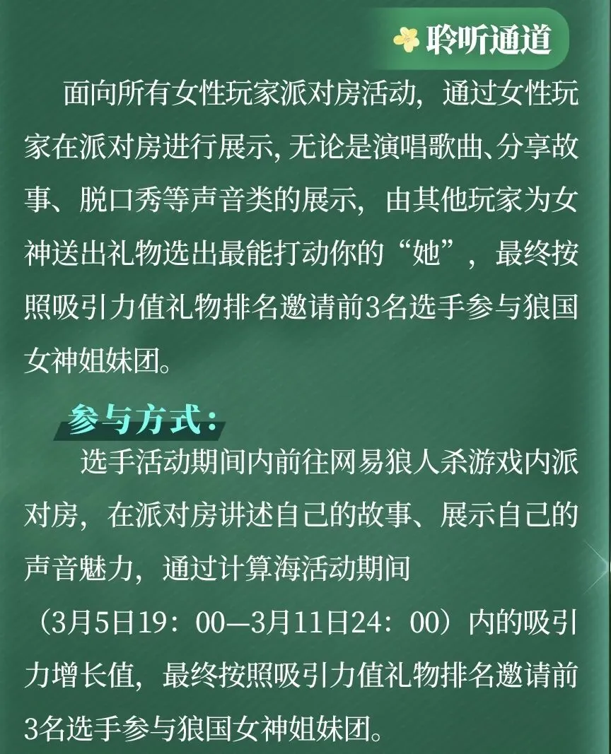 狼人杀女生节限定活动来袭!