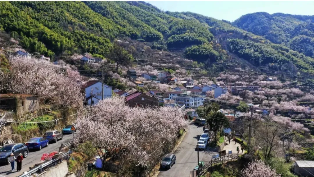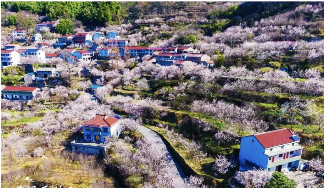 走进悬岩村,宛如误闯进了秘境!整个村子被粉色笼罩,灿若云霞,犹如万里香雪海,走进了看花团锦簇,美不胜收。远望半山腰上的农居,已经被白色雪花般的樱桃花包围,变得若隐若现。