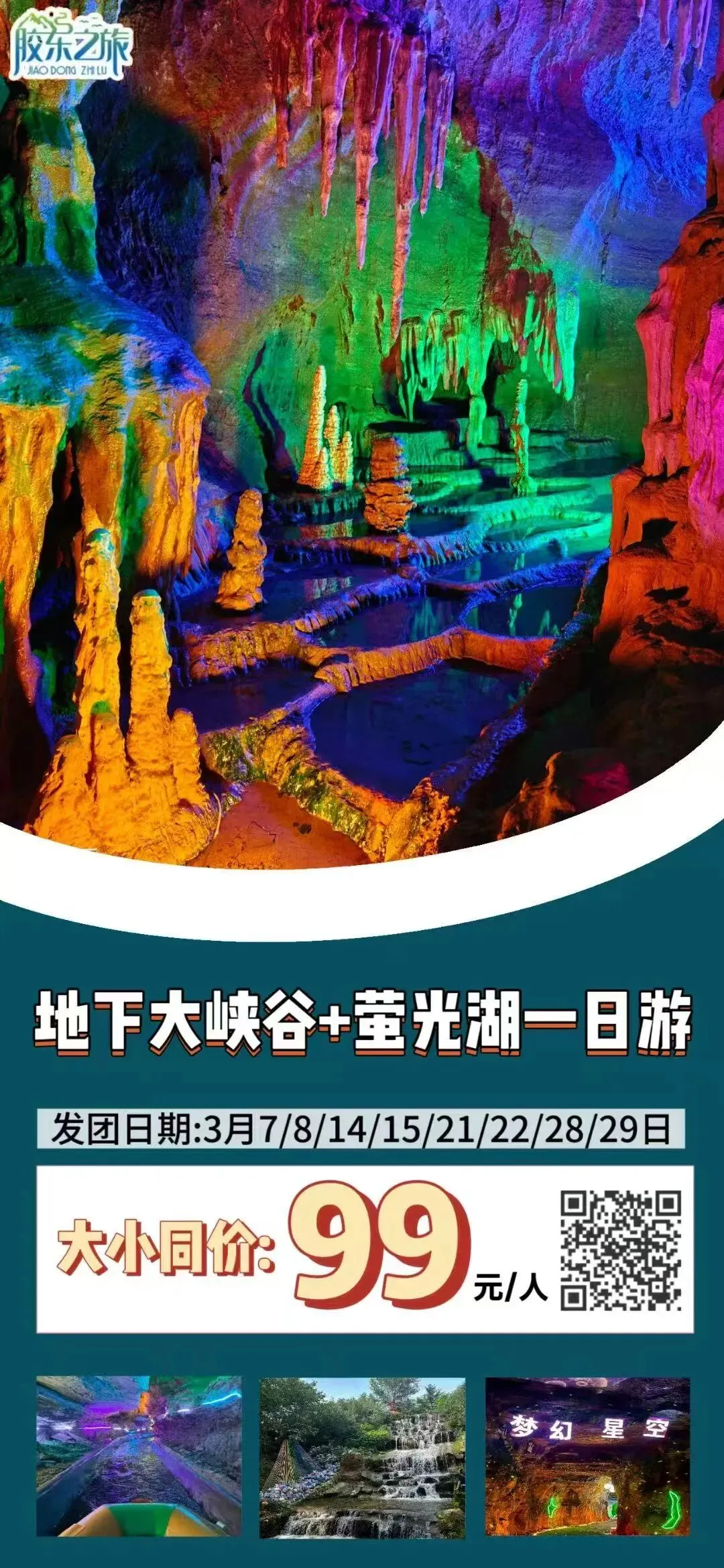 地下大峡谷恒温18℃,钟乳石千姿百态,乘舟穿行地下河,仿佛闯入奇幻地心世界;荧光湖藏着漫天“星光”,萤火虫飞舞,温柔又治愈,一洞隔两季,解锁春日不一样的清凉。