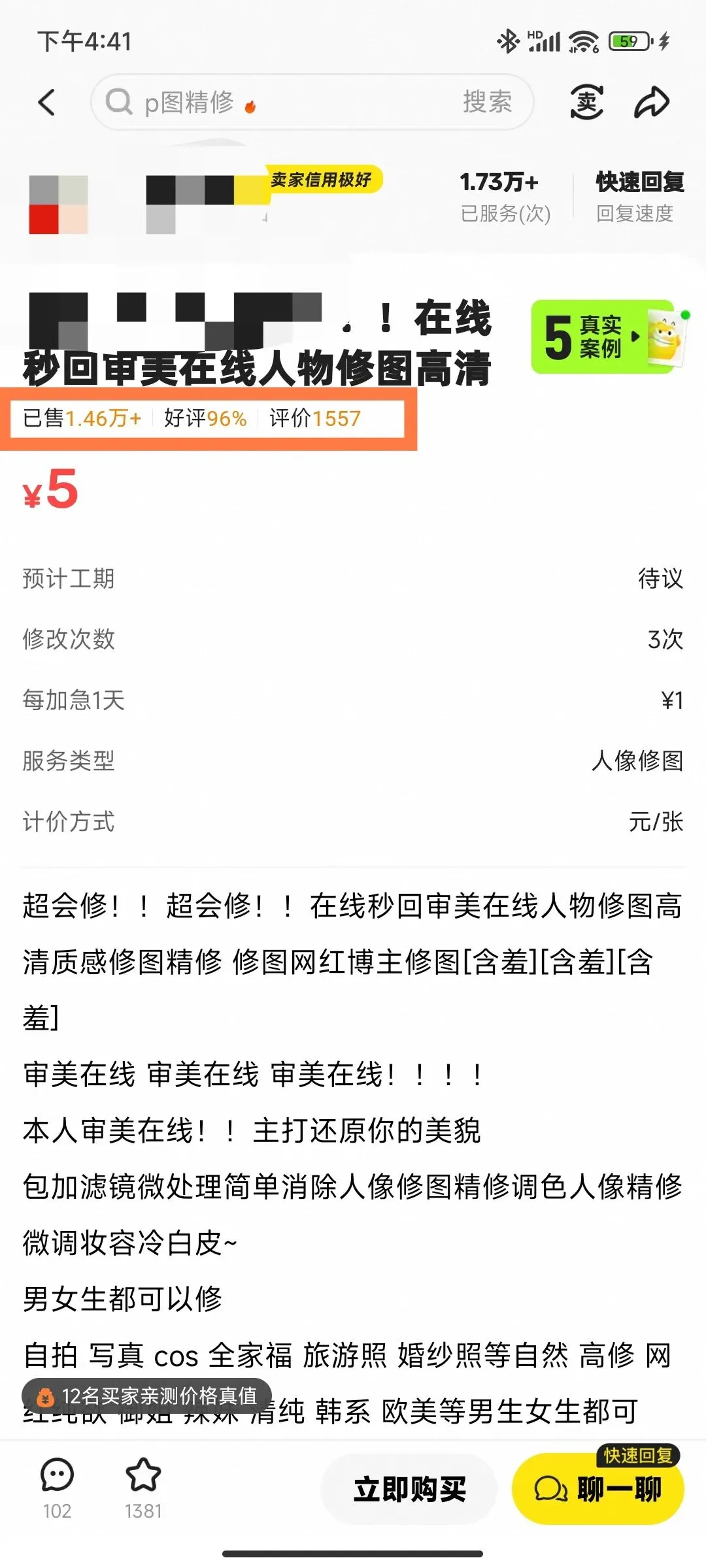 这是闲鱼上AI写真的定制商品,单月销量5900单。
