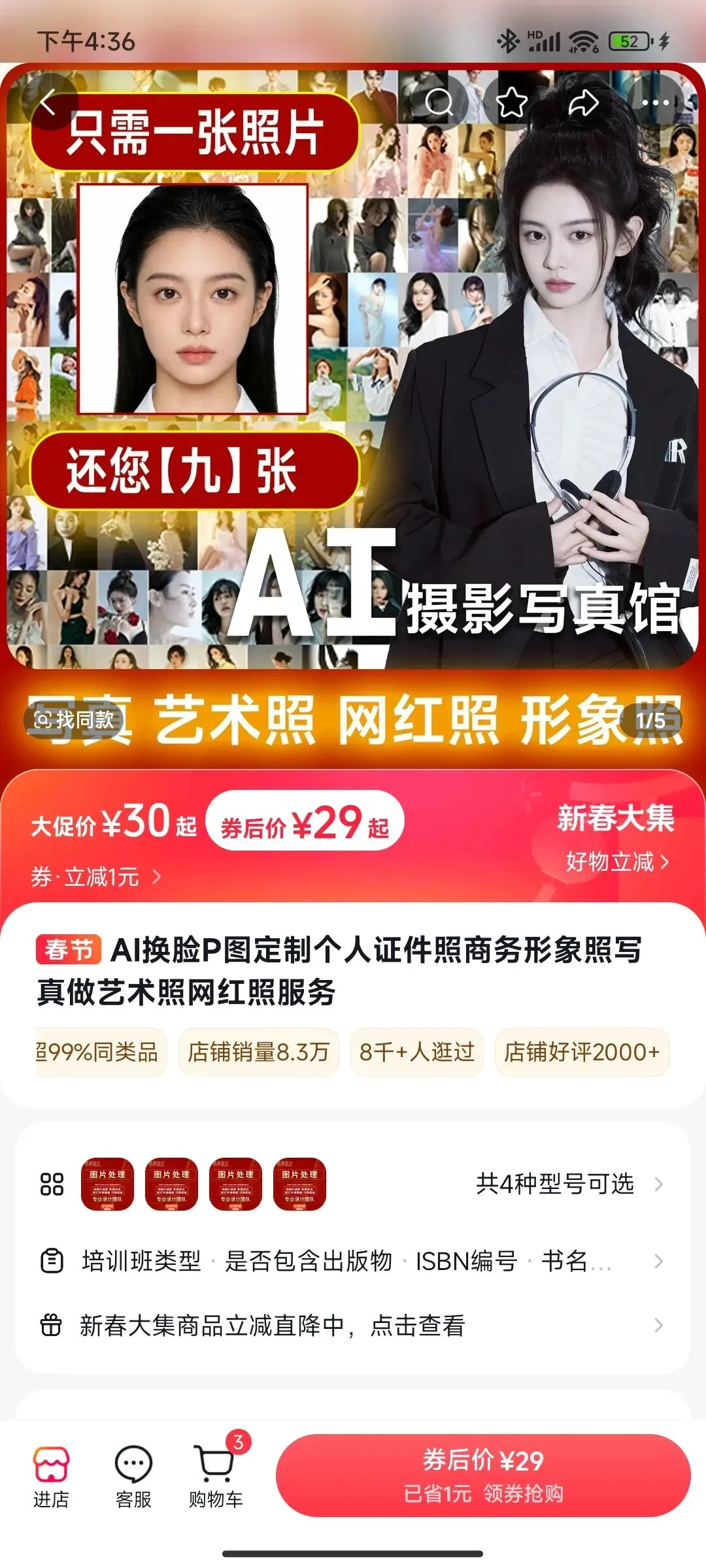 某音上也有专门做AI照片定制的店铺,39元的客单价。