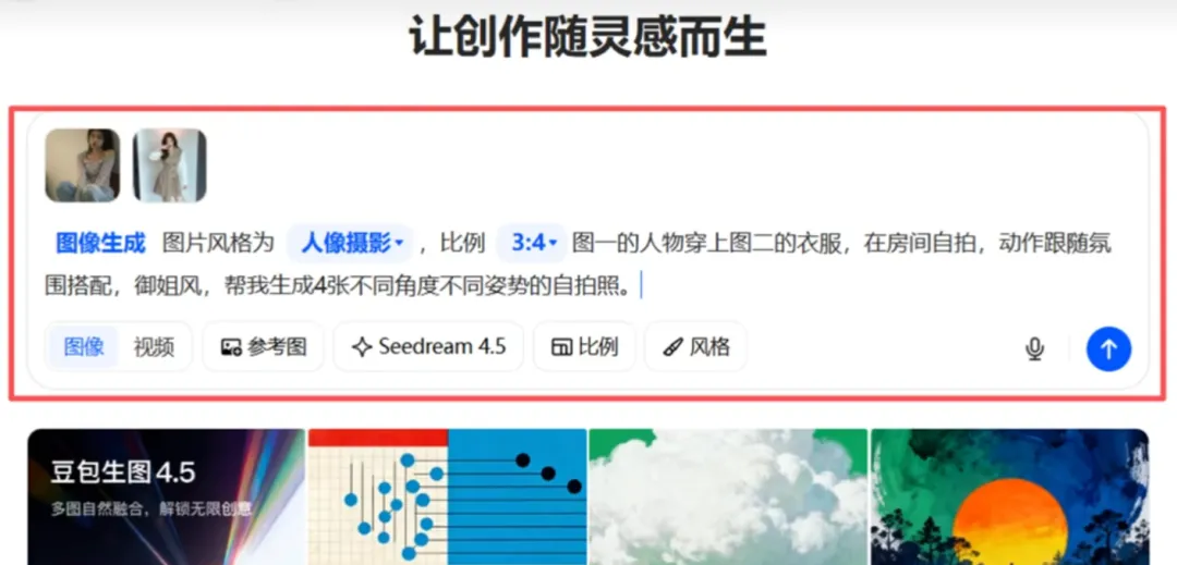 把刚才准备好的人物自拍参考图和服装图上传一下。