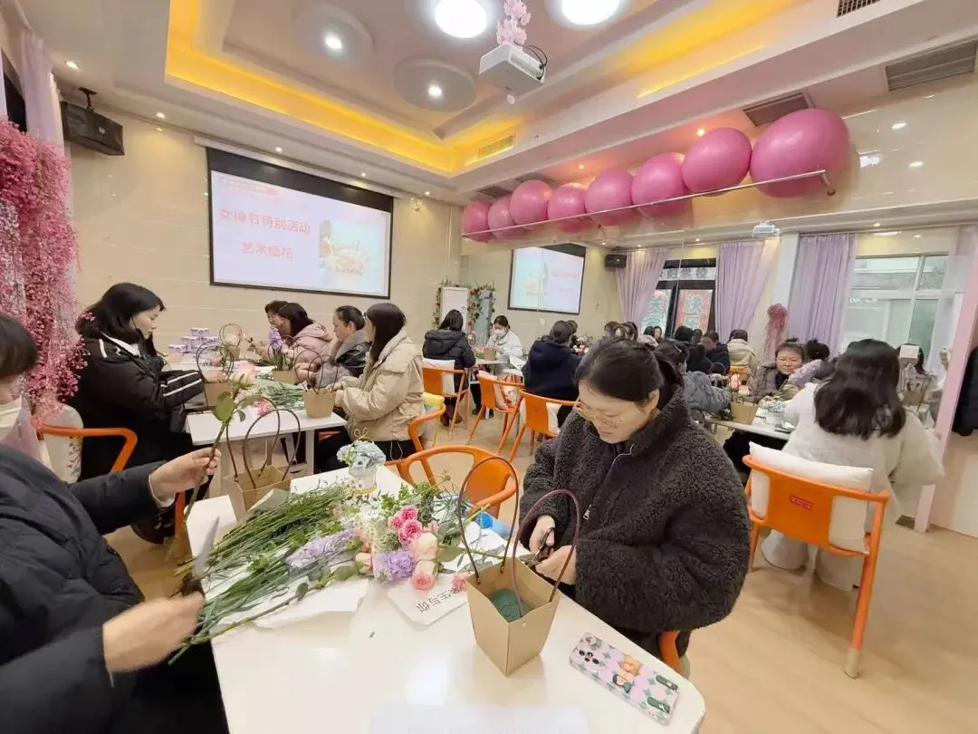 此次插花活动,不仅让准妈妈们在动手创作中舒缓孕期压力、愉悦身心,更将艺术胎教与节日关怀相融。亲手完成的花艺作品,既是送给自己的女神节礼物,也承载着对新生命的美好期许。
