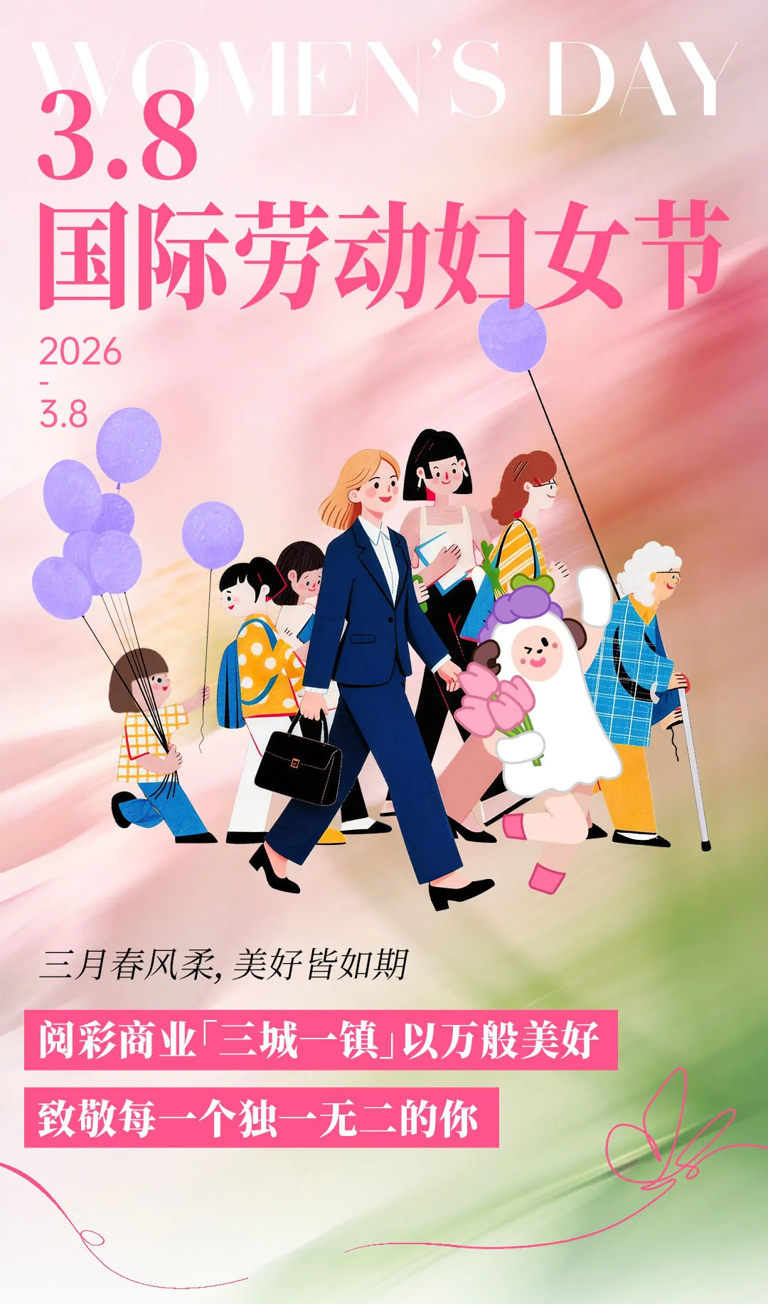3月7日-3月8日,阅彩商业「三城一镇」联动献礼,超多精彩活动,只为宠爱独一无二的你。