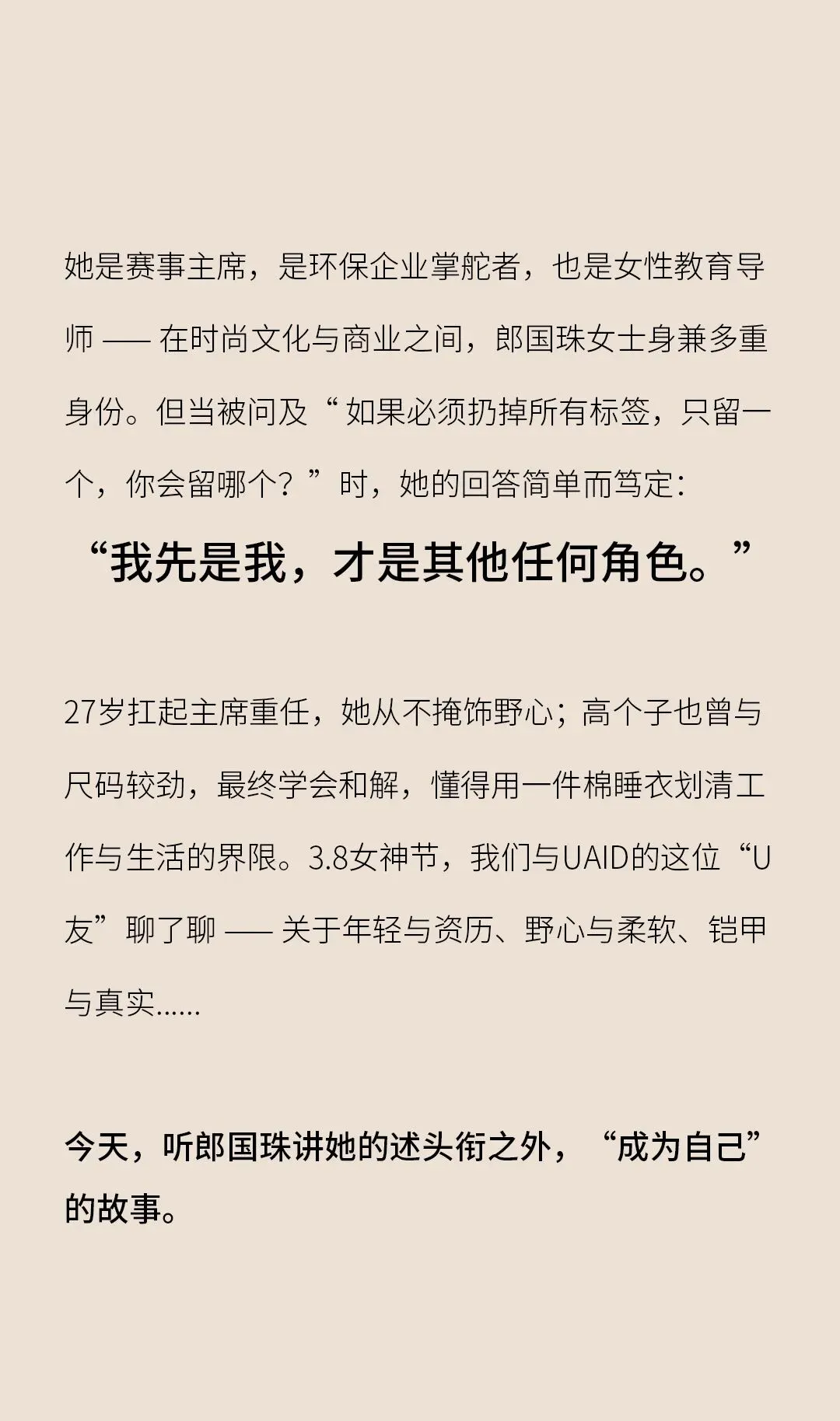 当前位置:首页>美女资讯>U MOMENT女神节特辑 | 郎国珠:我先是我,才是任何角色