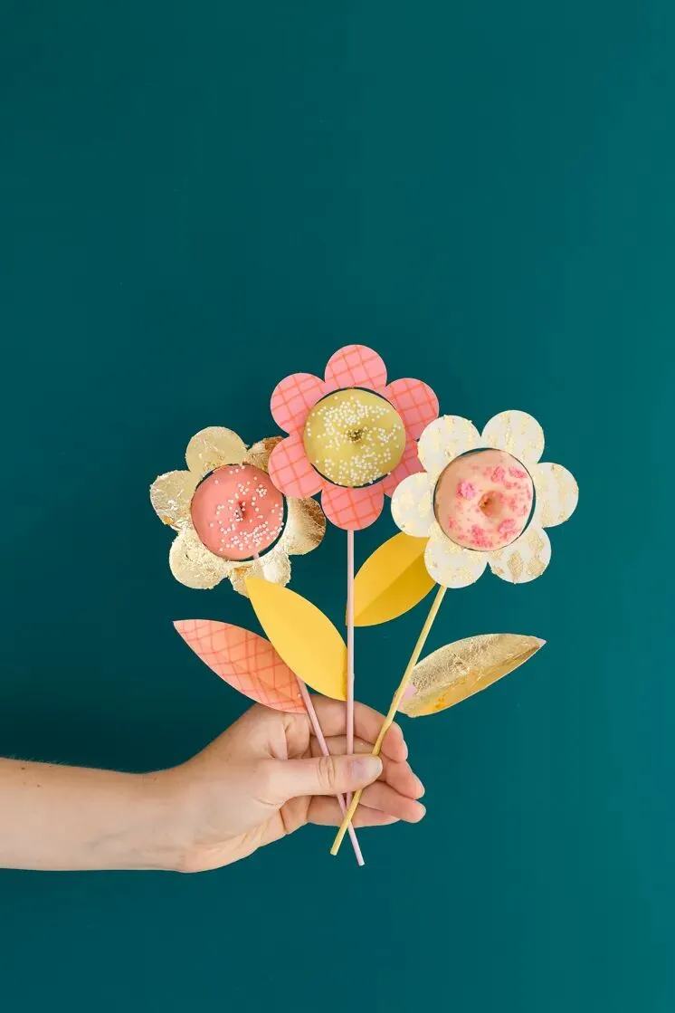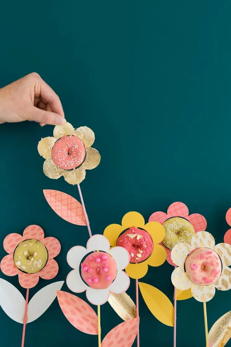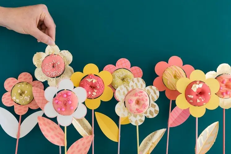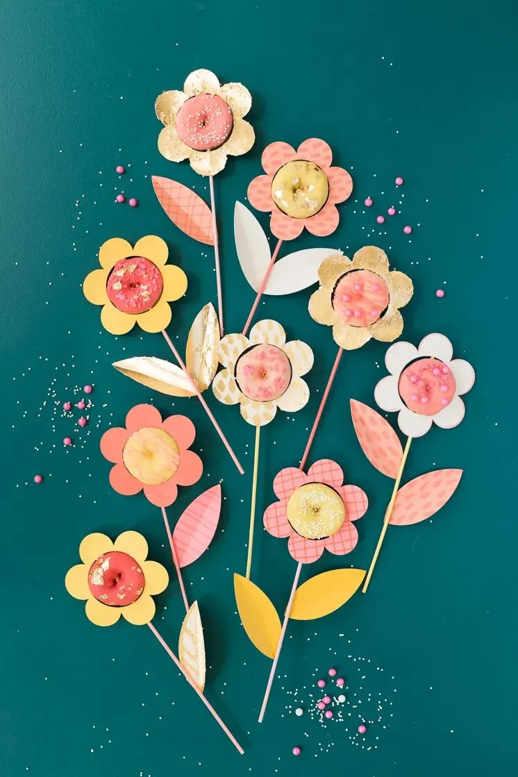 学着下面创意将甜甜圈用手工花包裹起来