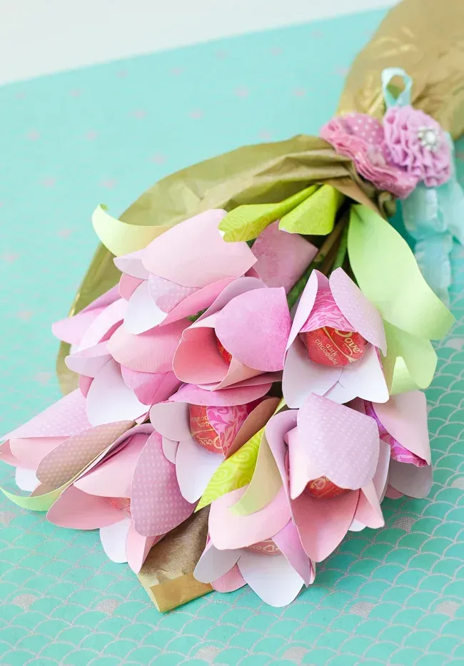 再花点心思,将巧克力做成一束花