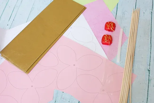 继续准备一些竹签、彩纸、包装纸等