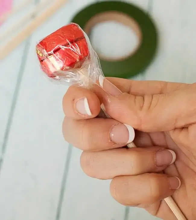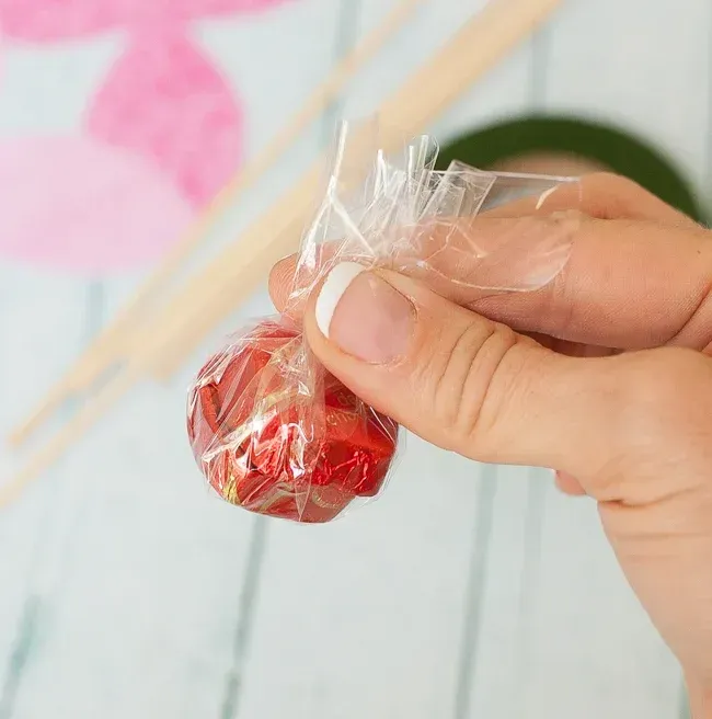 用透明玻璃纸将巧克力包起来