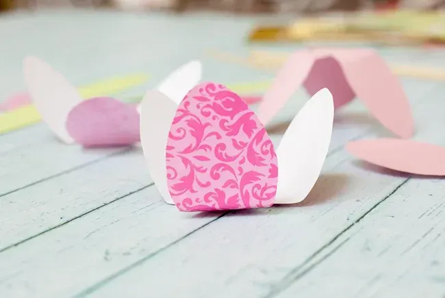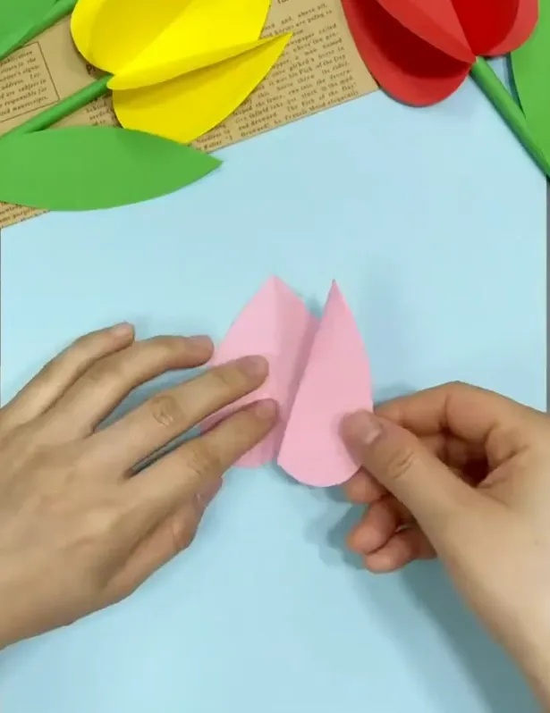 分别将两张花瓣纸对半折粘贴在两边