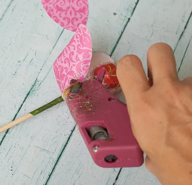 用热胶枪将花瓣互相粘贴起来