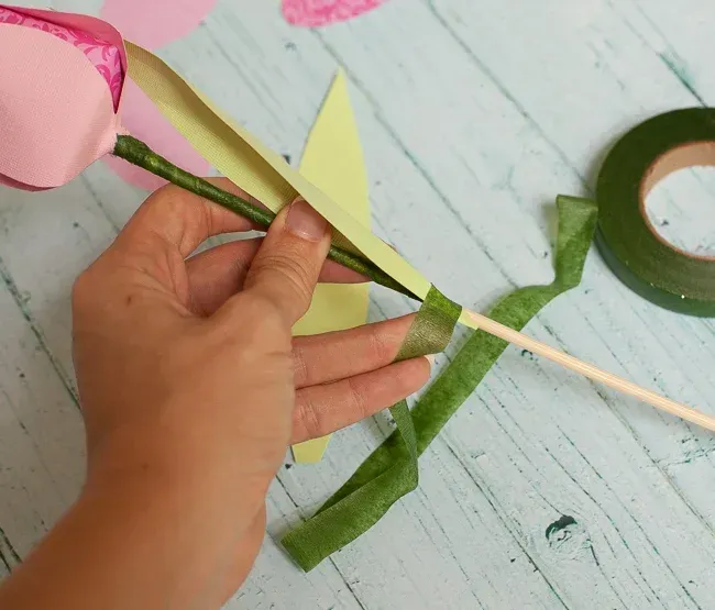 缠上绿色的纸胶带