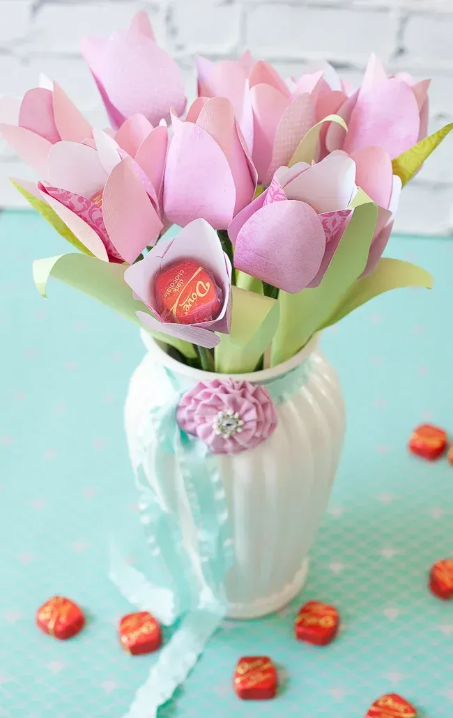 看着这样一束粉嫩嫩的巧克力花