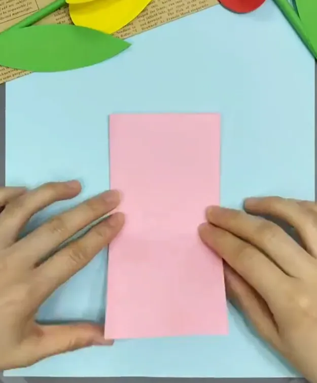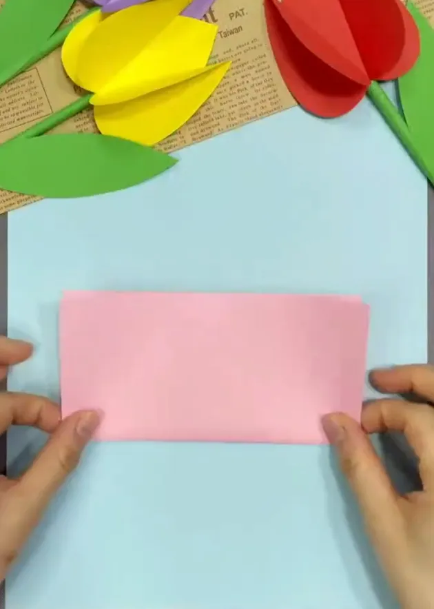 先将彩纸上下对半折