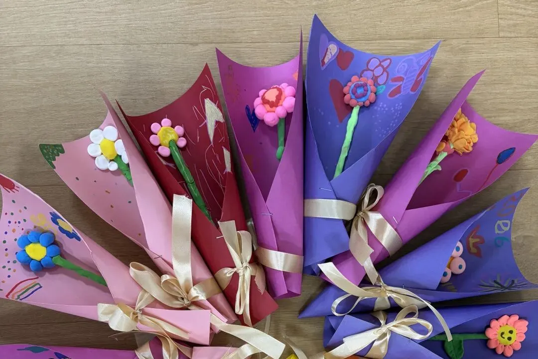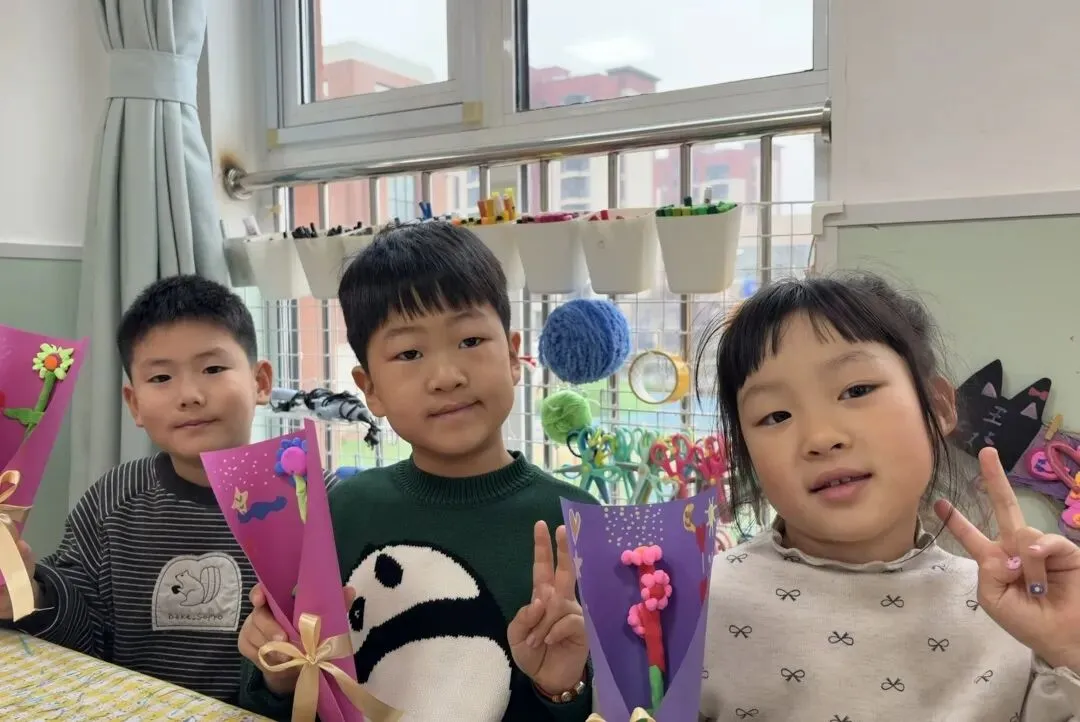 孩子们用灵巧的小手画一画、贴一贴、剪一剪,转眼间,一朵朵娇艳欲滴的花朵在他们手中绚烂盛放,每一朵花,都是爱的独特表达,愿这份爱,随花香飘向远方,温暖每一个家庭。