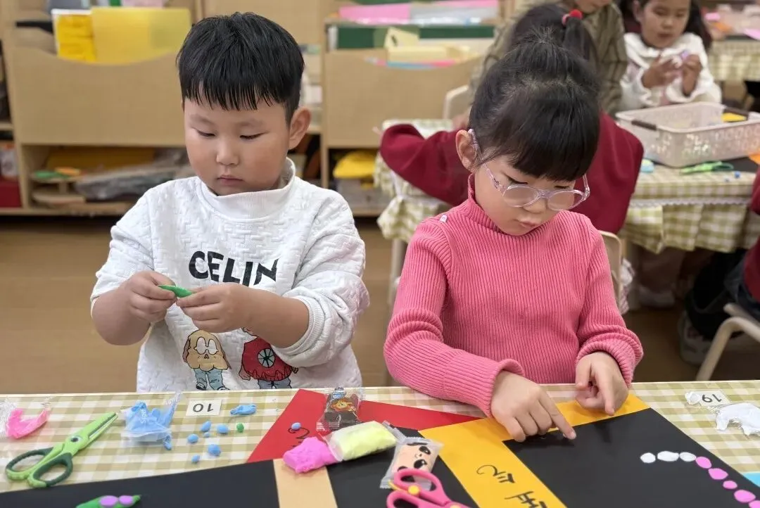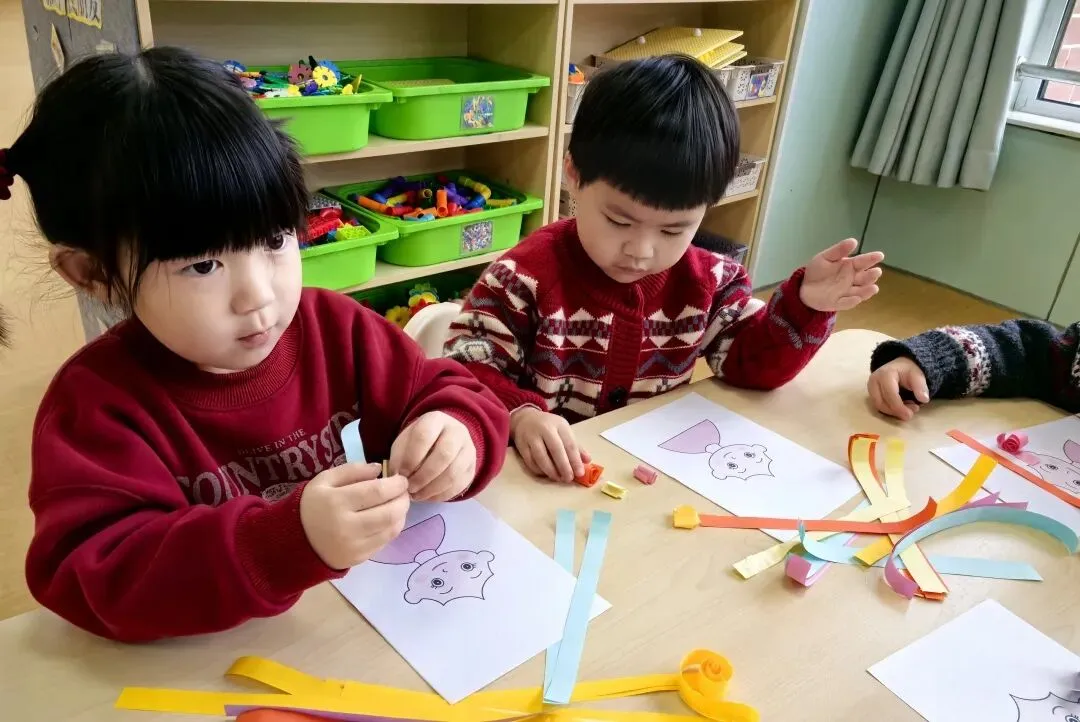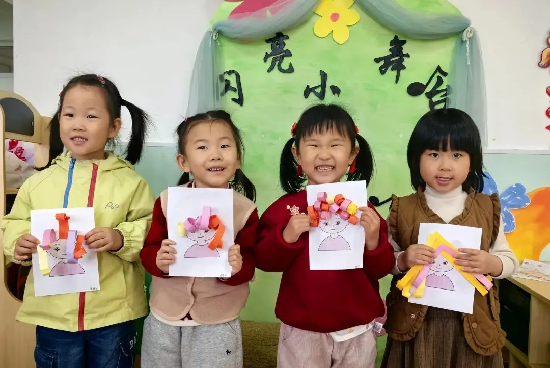 一张张彩纸在小手中翻转、卷曲,轻轻一拧,卷出俏皮的弧度。认真粘贴,细心装饰,宝贝们专注的小模样,是教室里最动人的风景。