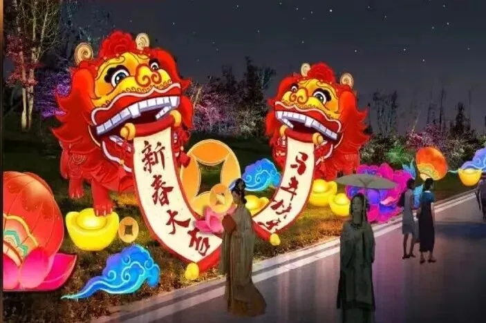 多组大型主题非遗灯组点亮广场