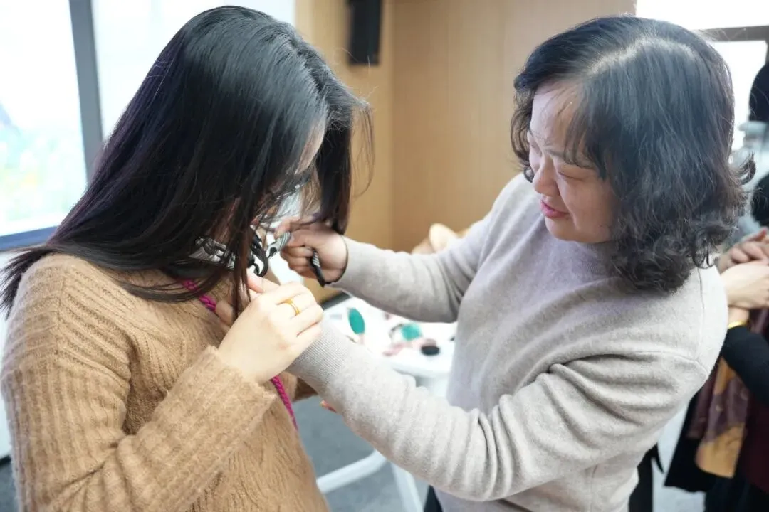 培训现场氛围温馨又热烈,老师结合职场女性的日常场景,用通俗易懂的语言和生动直观的实操演示,从肤色诊断、身形适配、穿搭避坑等方面,为大家讲解了如何根据自身特点选择合适的服饰,扬长避短,轻松穿出职场高级感与日常舒适感,让穿搭不再是困扰,而是展现自我的加分项。