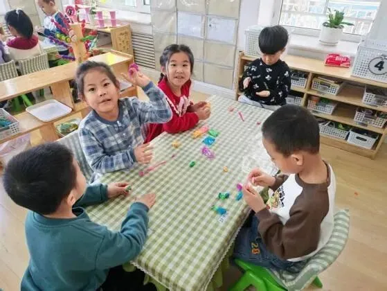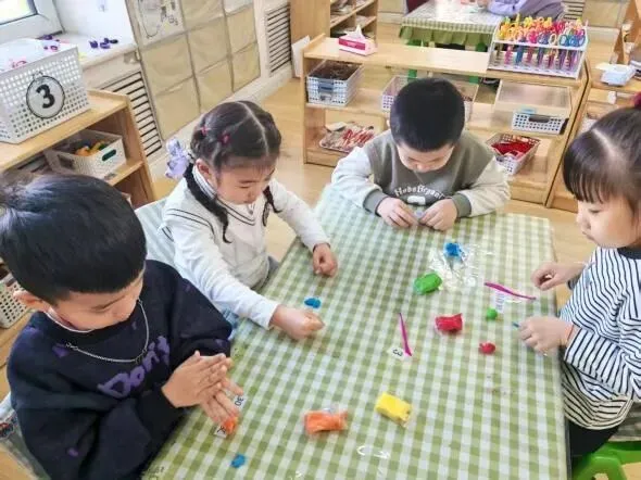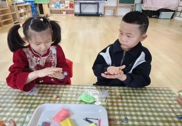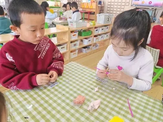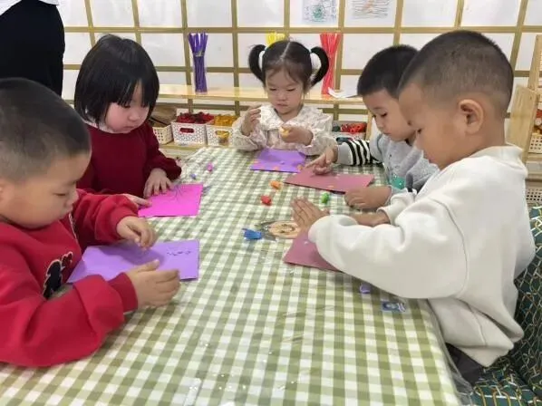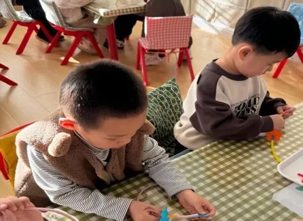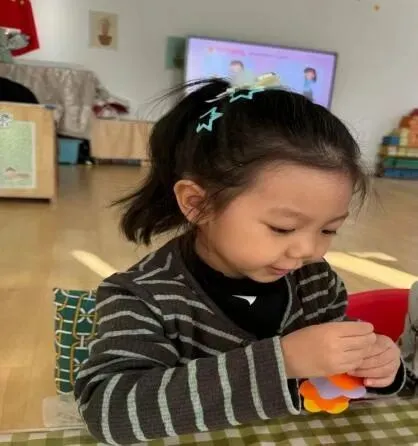宝贝们在认真的制作小花