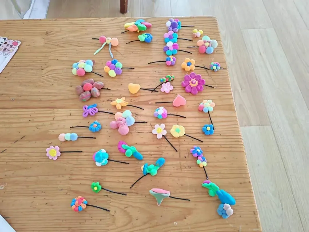 女神们收到了宝贝们精心制作的爱心发夹,开心极了!