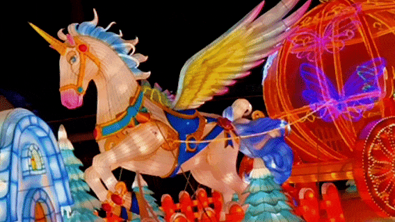✅ 飞马迎春灯组・浪漫主打卡:巨型飞马灯组搭配“南瓜马车”,站在灯前打卡,自带主角光环,新的一年好运“马上起飞”!