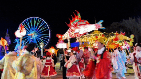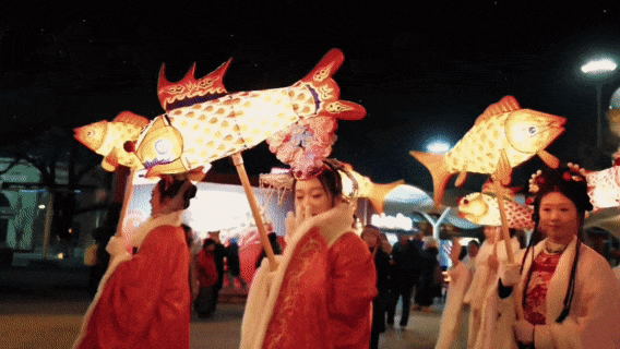 浪漫鱼灯巡游+打铁花持续上演