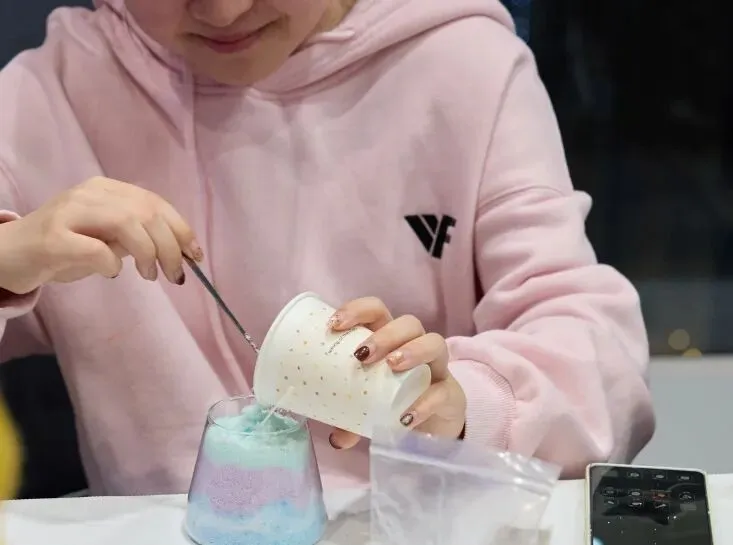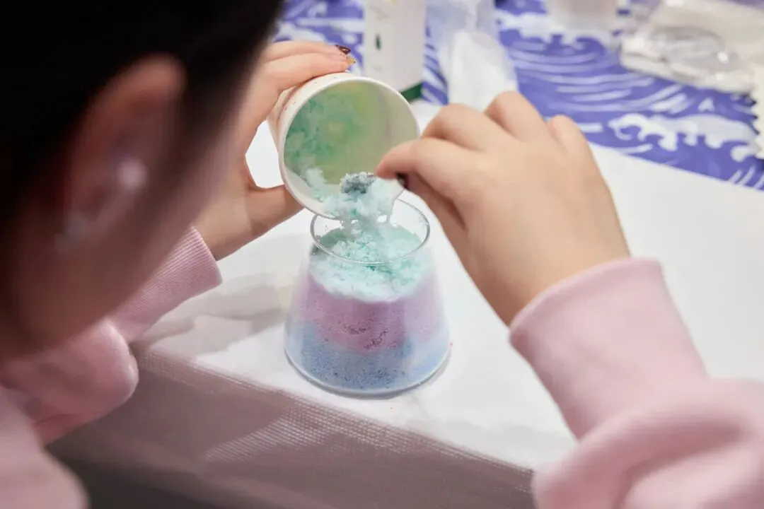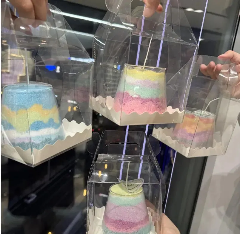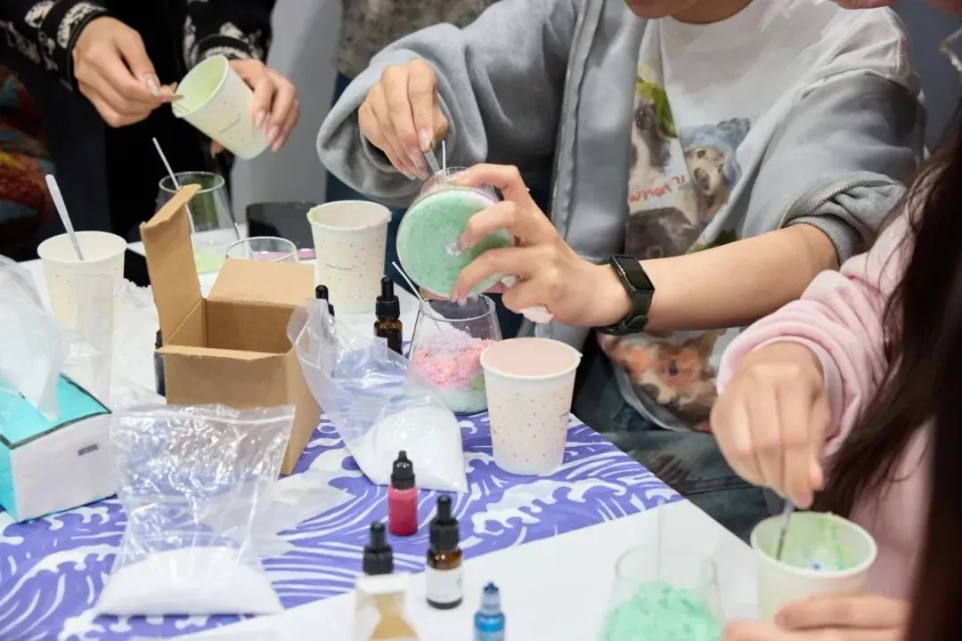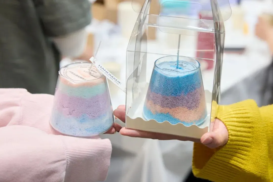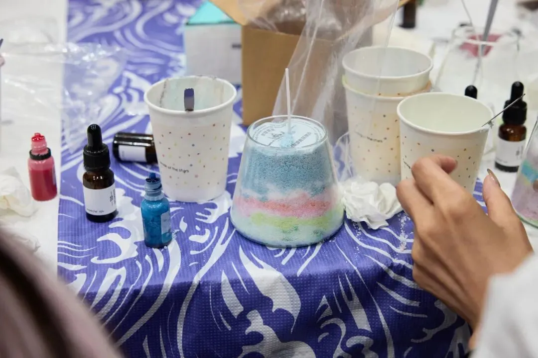 当细腻的彩沙在透明容器里层层堆叠,山川湖海、春日花海便在手中缓缓成型。再注入蜡液,让这份风景凝固成永恒,点亮时,温暖的光芒与治愈的香气一同弥漫,治愈又解压。