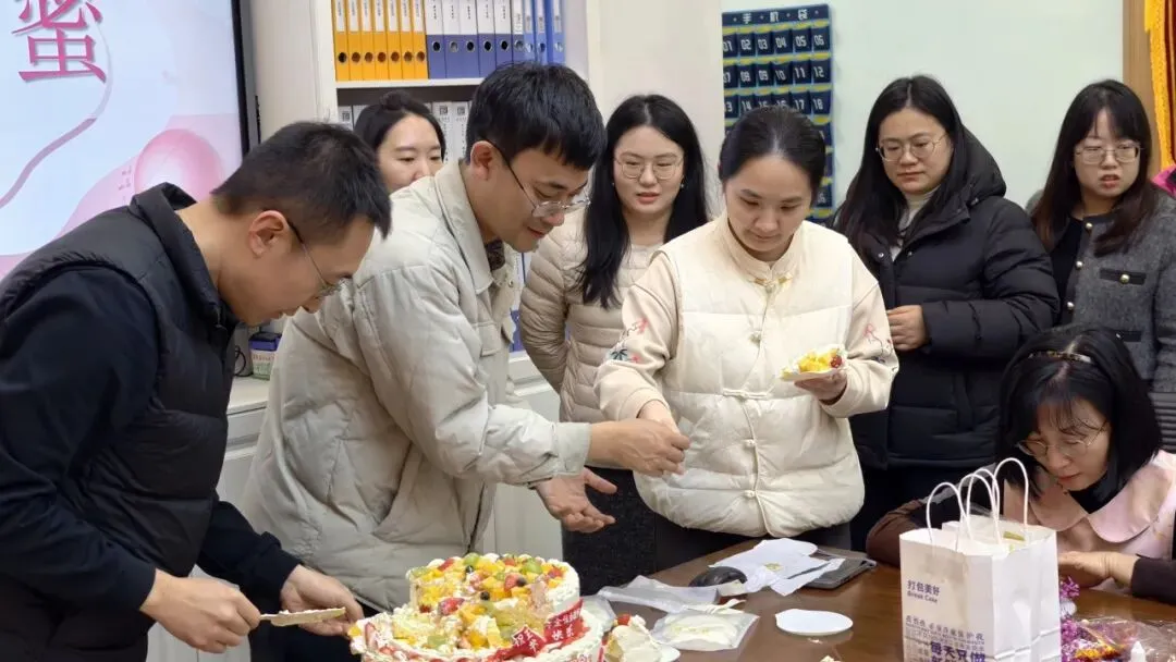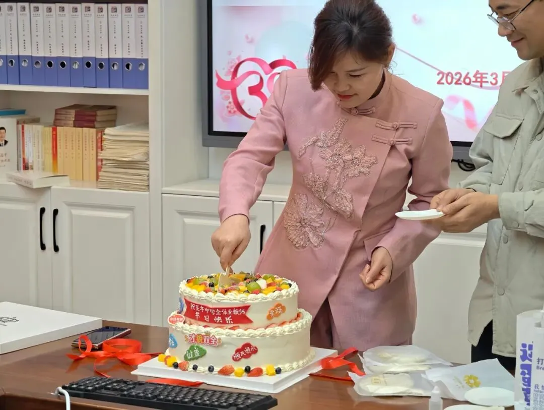 活动现场温馨融融,学校领导与男教师们化身“暖心使者”,以温柔的姿态为女教职工送上香甜蛋糕、致以节日问候,简单而真挚的仪式,传递着校园大家庭的温暖与爱意。