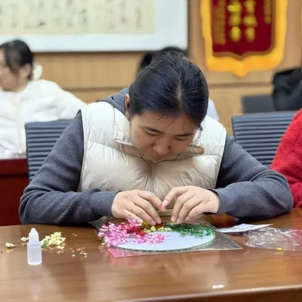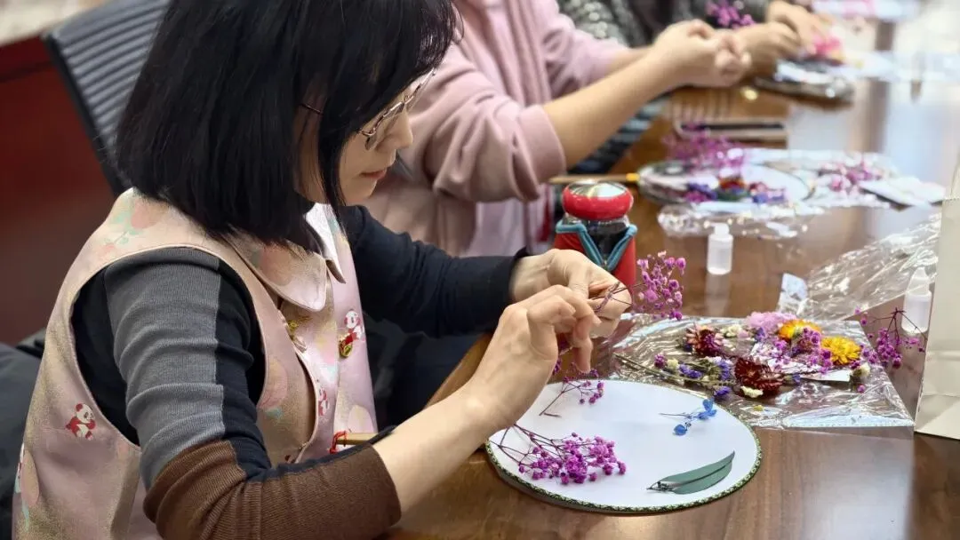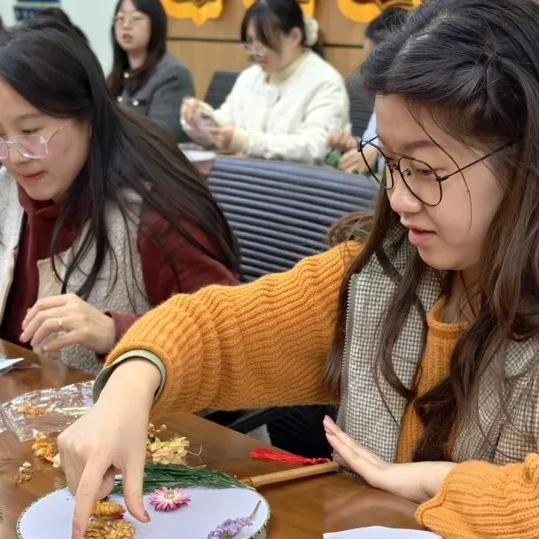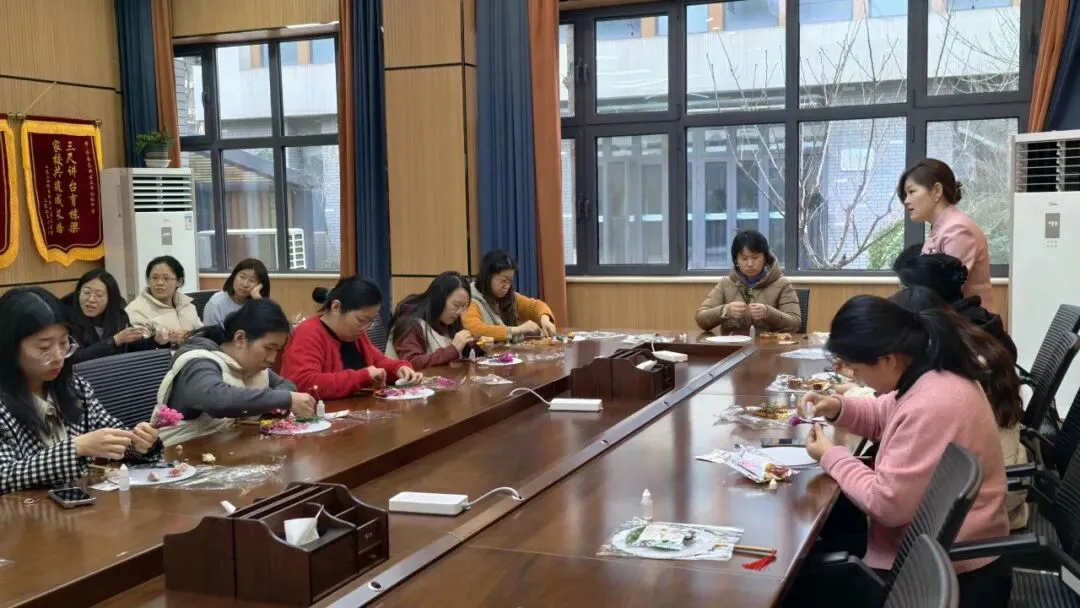 紧接着,“丰雅凝芳——干花团扇DIY”环节开启,女教职工们发挥创意、相互交流,亲手制作专属团扇,舒缓了工作疲惫,定格专属节日的美好。