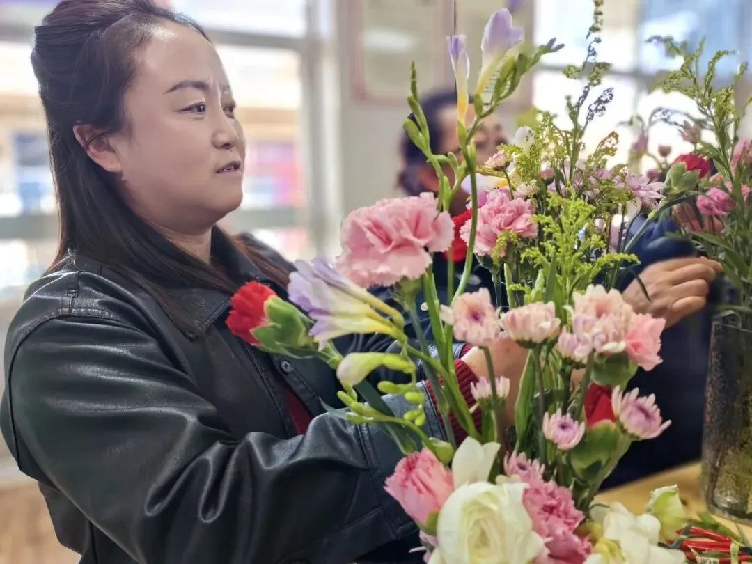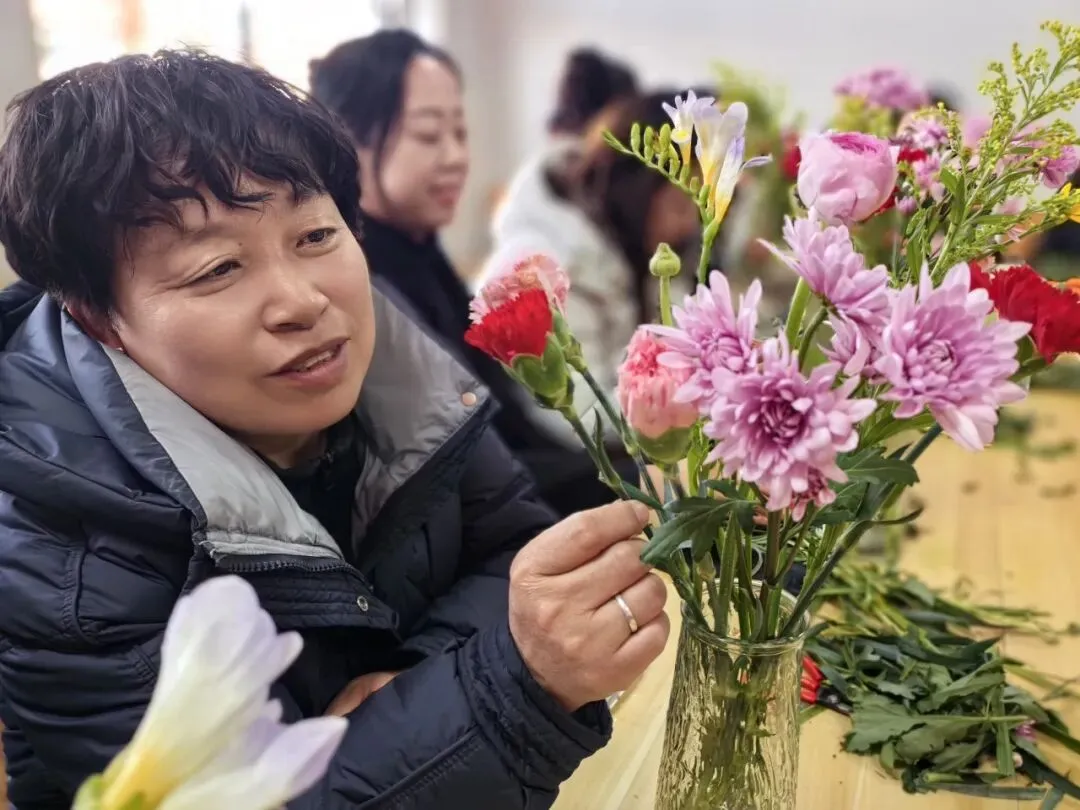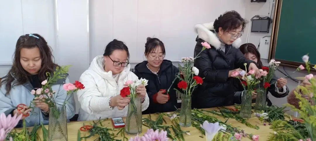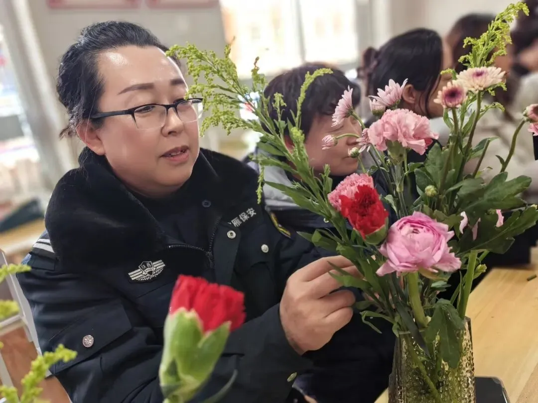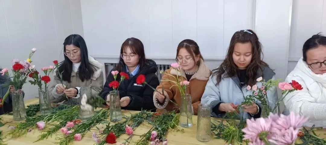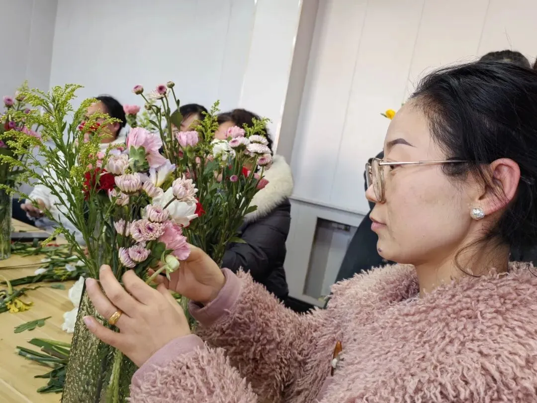 致辞环节结束后,活动迎来了高潮——自由插花环节。由妇联工作室李芳芳老师为女教职工们讲解花艺知识与插花技能,让女教职工在活动中加以实践运用,纷纷化身心灵手巧的艺术家,精心修剪手中的花材,巧妙地进行搭配组合。不一会儿,一捧捧独具匠心、色彩明艳的插花作品诞生了。