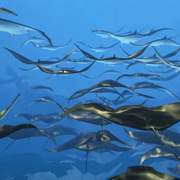 从海面垂直下潜,穿越波光粼粼的真光层、幽蓝神秘的暮光层,直至完全黑暗、唯有生物荧光闪烁的无光层。就在这片“寂静王国”里,一场深海“追光者”的角逐正在上演:抹香鲸群凭借“哒哒”的声呐,追寻着大王乌贼的踪迹。