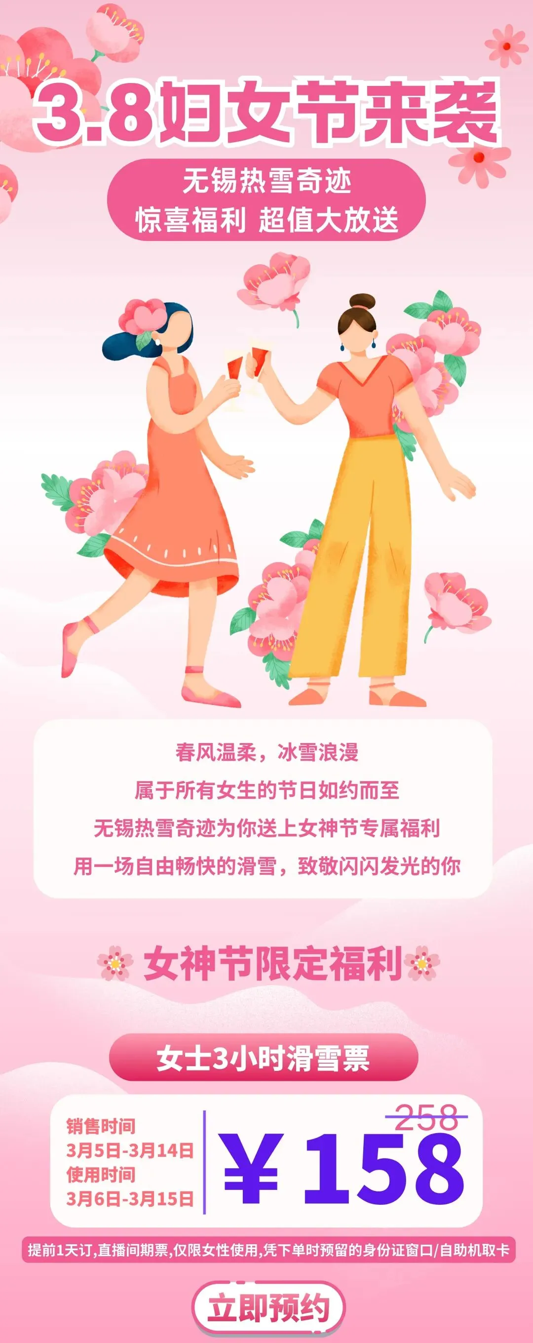 当前位置:首页>美女资讯>3.8女神节|无锡热雪奇迹女士专享票来啦!赴一场冰雪之约