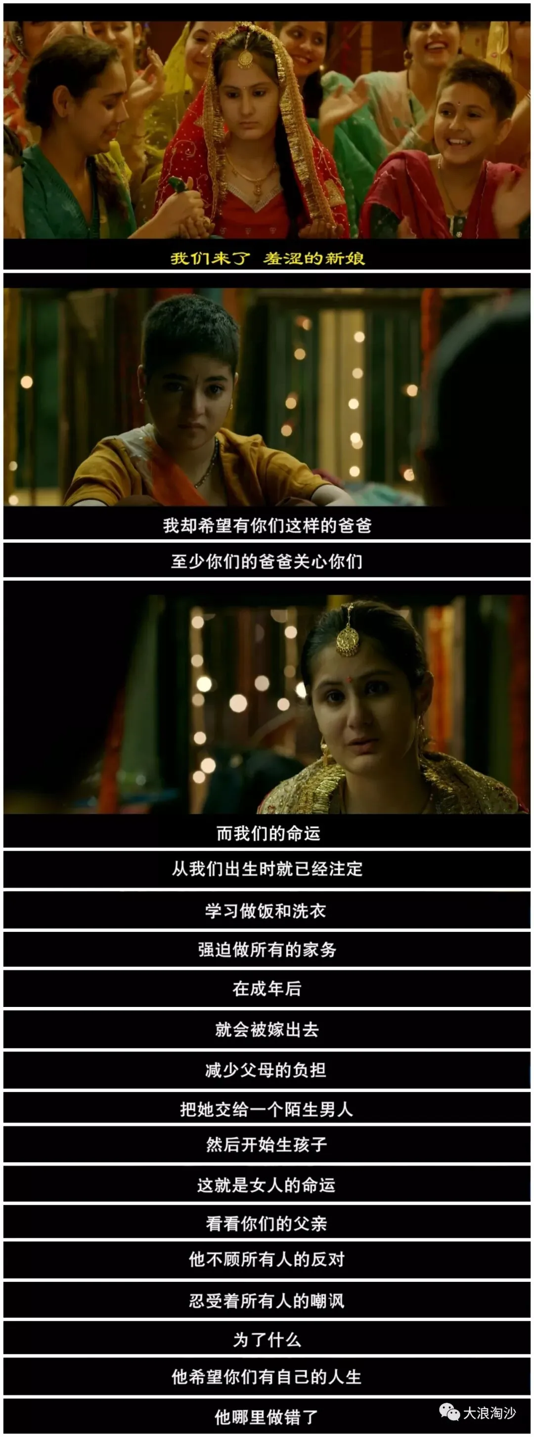这句台词是一针见血,非常有价值。《摔跤吧!爸爸》一部思想性观赏性俱佳的电影,很不能理解一部分人为何要打着“女权主义”的旗号来批判这部电影。电影中女儿态度的一个转折点就是看到了早早嫁人的朋友未来的生活,被家务和生育绑架的生活: