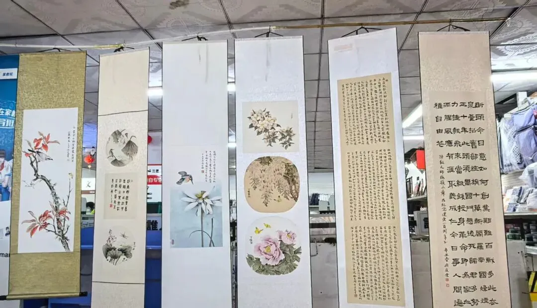 从作品到策划,全是我们自己动手,没有高雅的展厅,也没有统一尺寸,以书店空间布置展品,不拘一格。我们不图虚名,不逐功利,只为以笔墨寄情,以书画养心,在节日里添一缕书香,也为前来观展的朋友,送上一份雅致与欢喜。恳请各位方家、友人不吝赐教,多多指正!