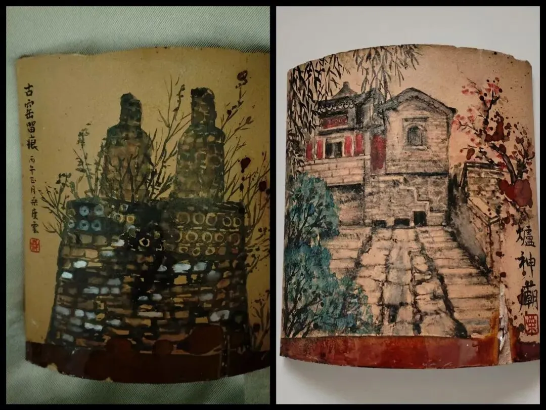 此次展出的作品,有书法、山水、工笔画和小品,有卷轴,有画框,有精致的扇面,还有捡来的瓦片,不同的创意,不同的风格,一笔一画,随心而作,彰显初心;一纸一墨,既展现生活,又表达对家乡的真挚情怀
