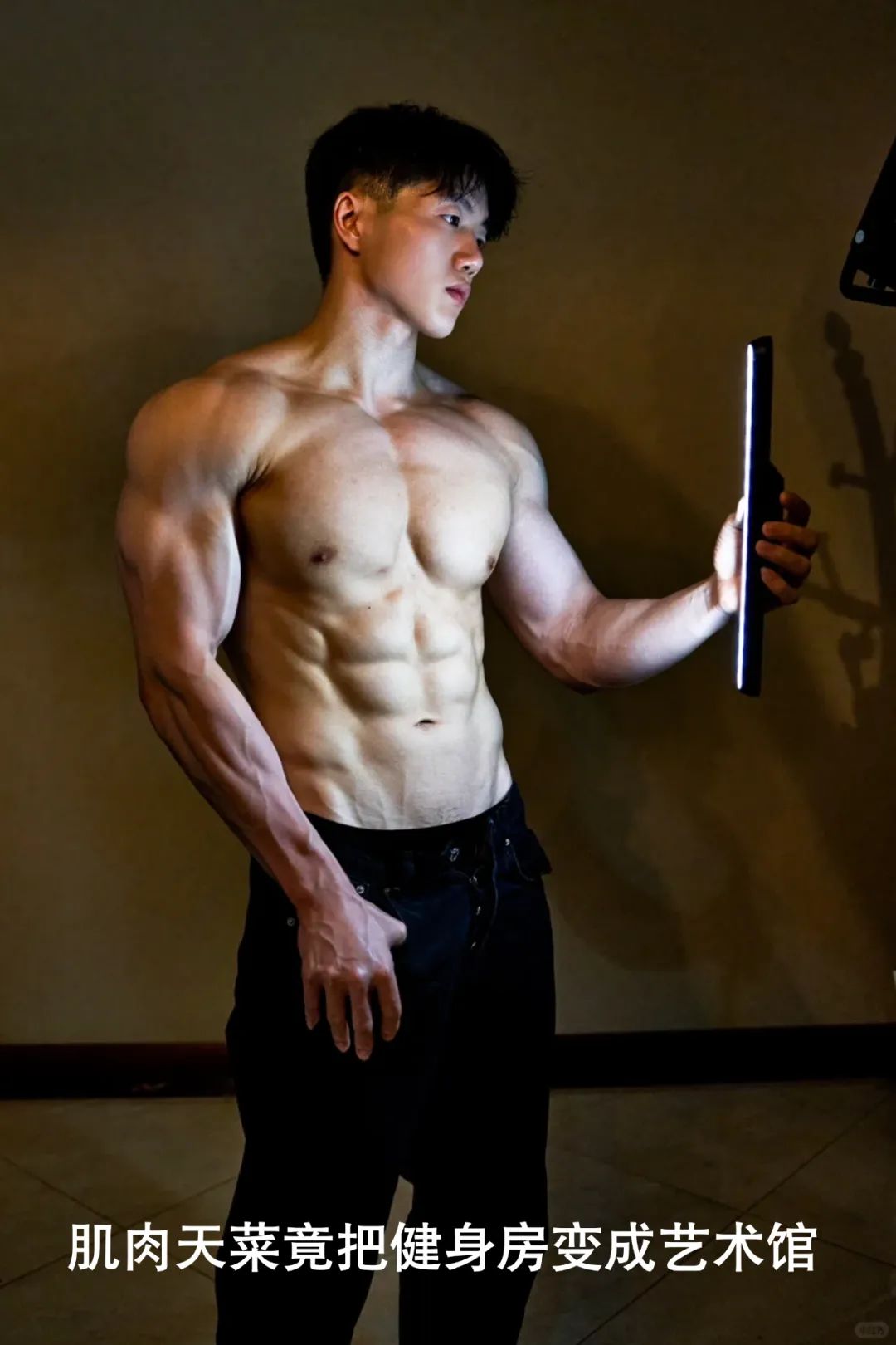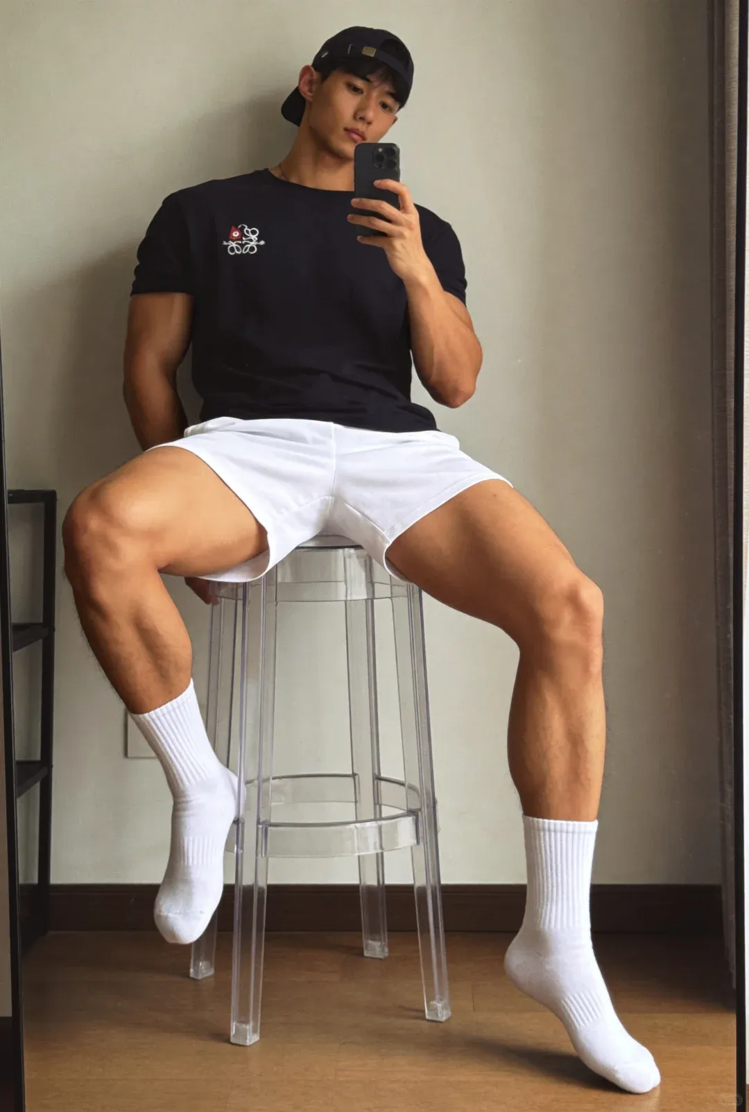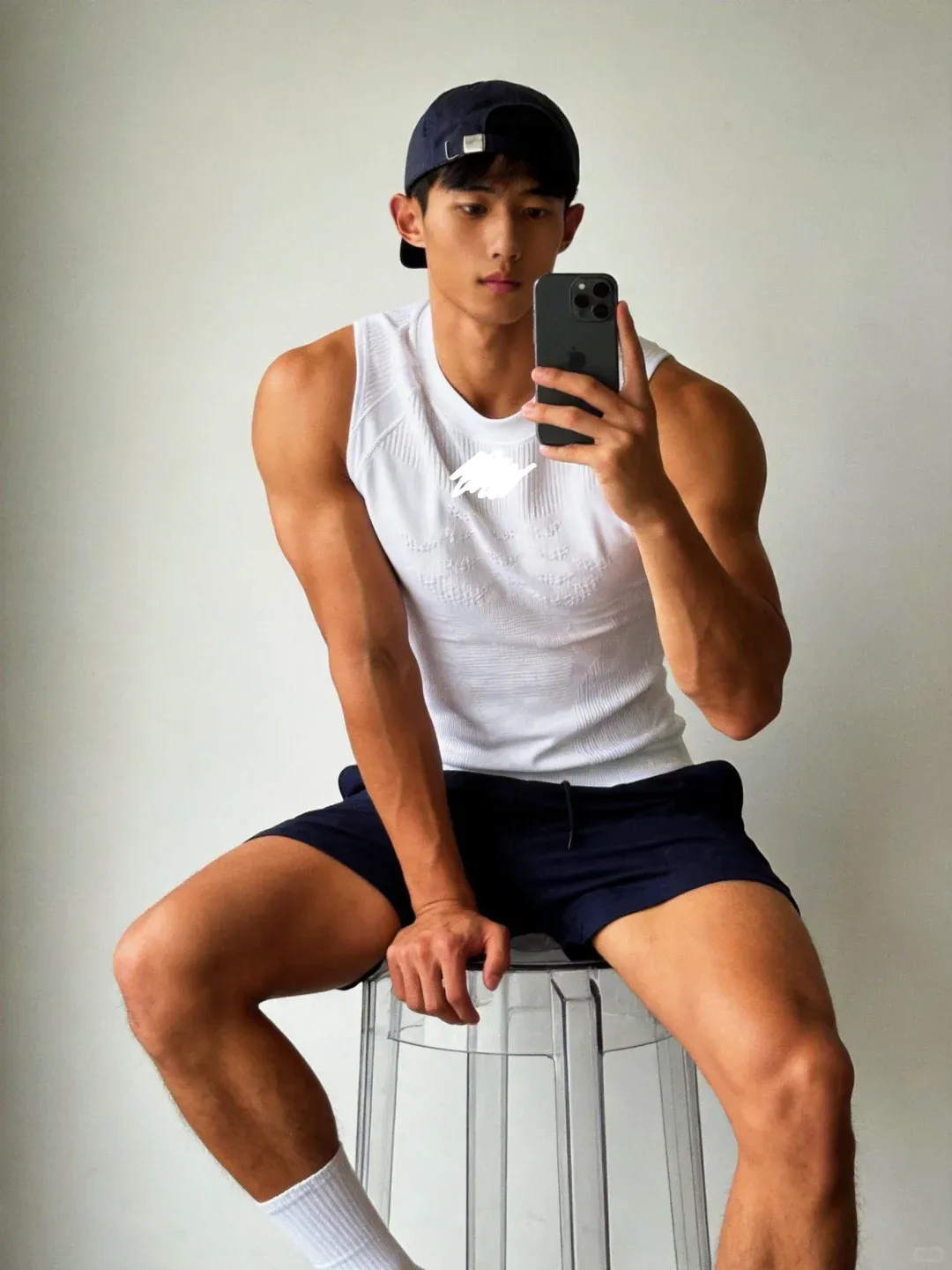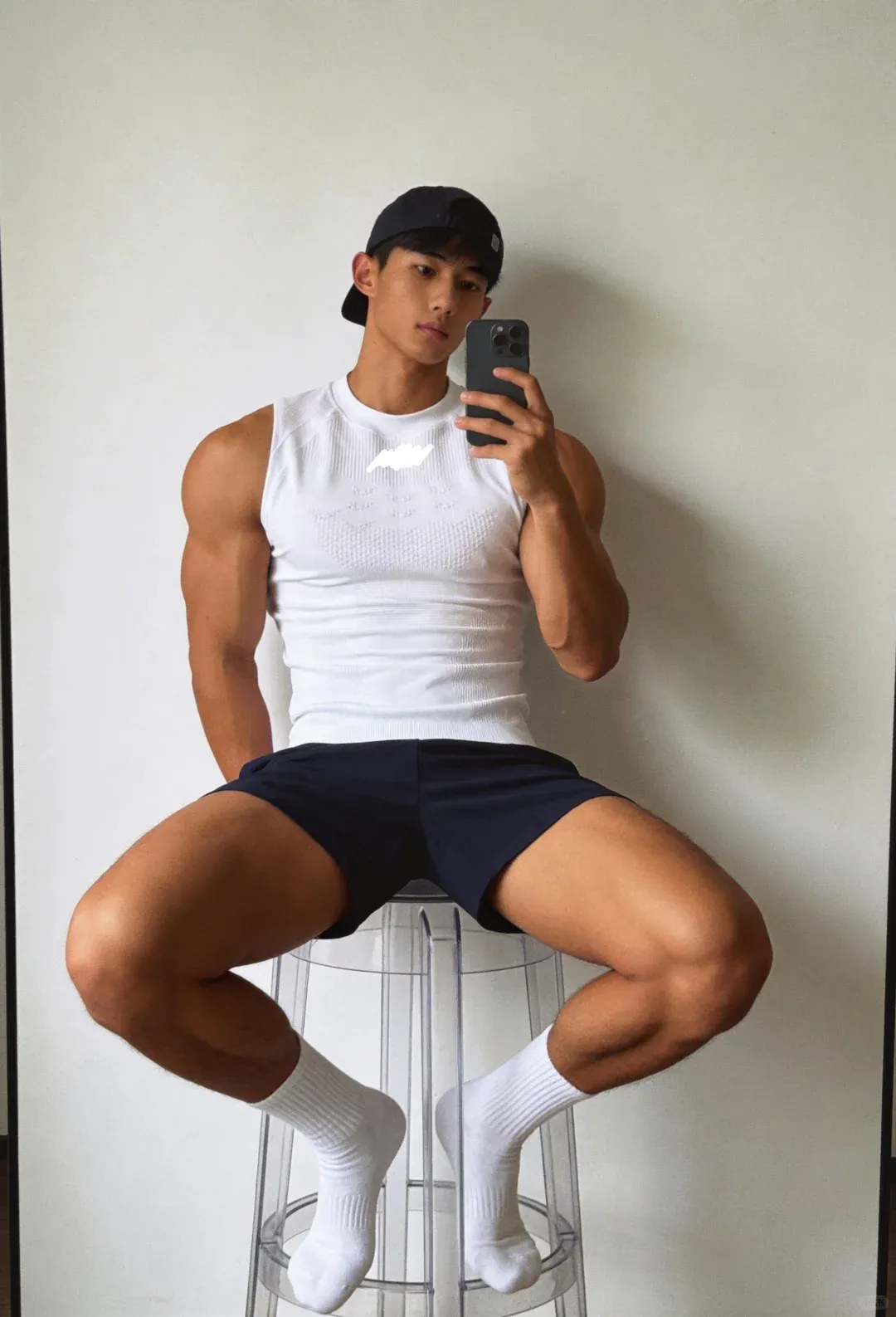 最后再来一张对镜自拍,黑皮配白袜,肌肉搭少年感,硬汉与软萌无缝切换,这样的宝藏小哥谁能拒绝?