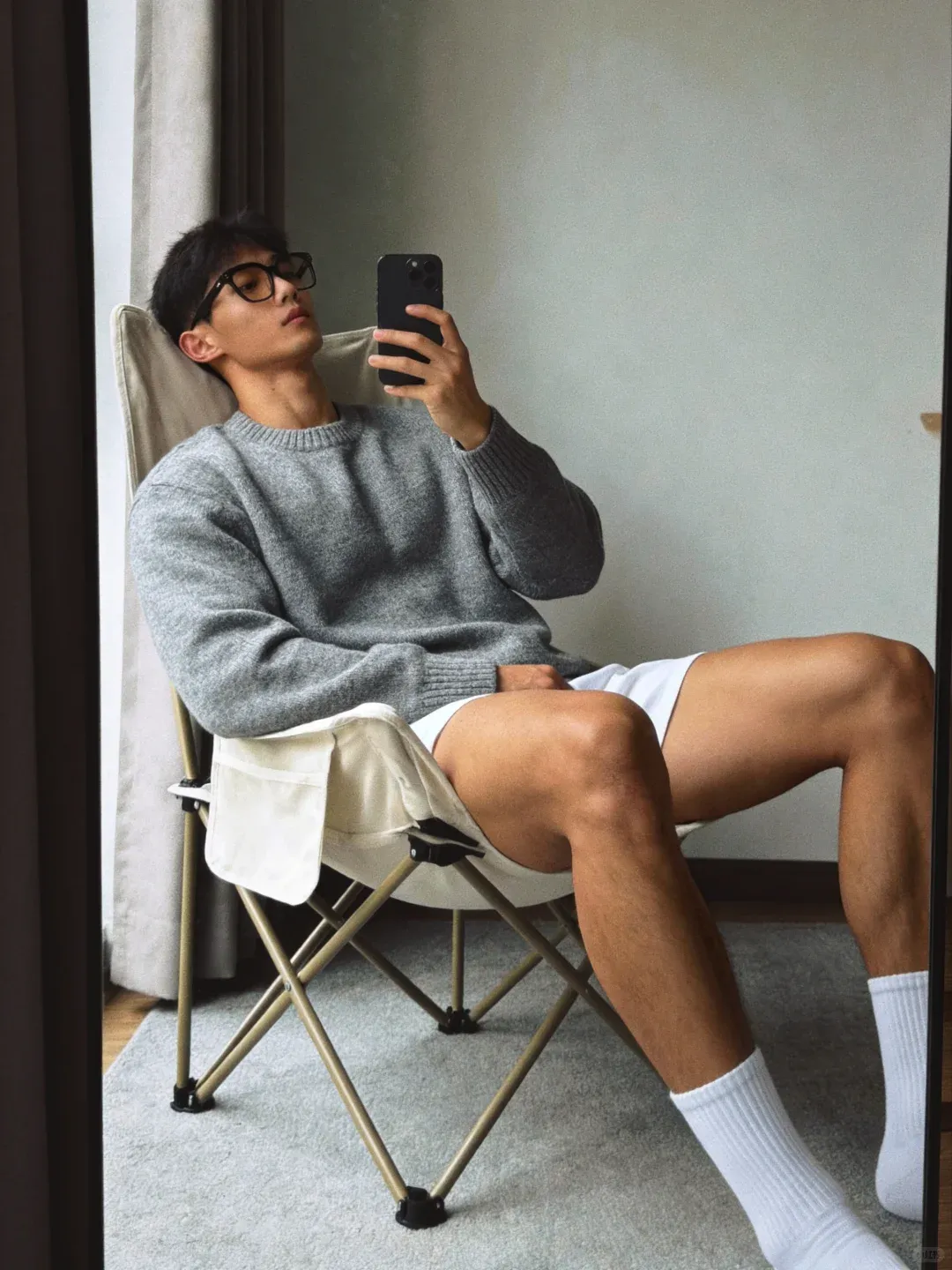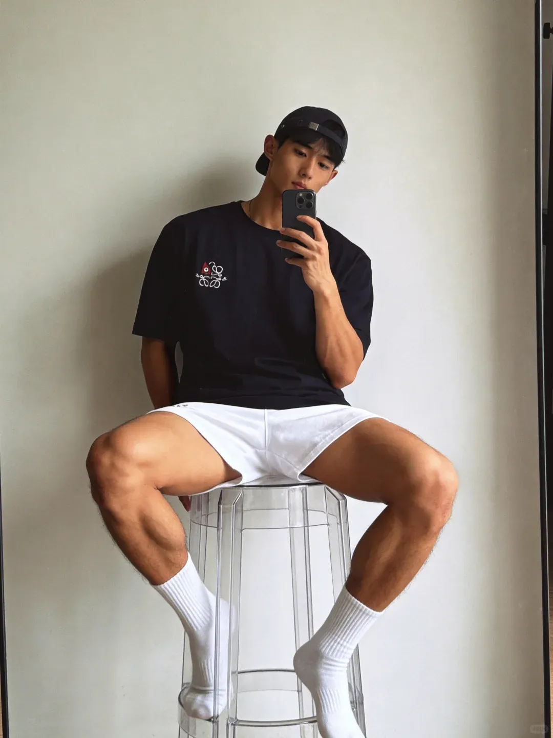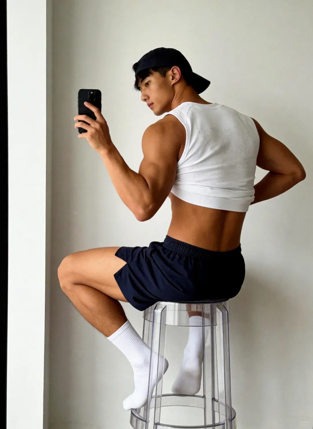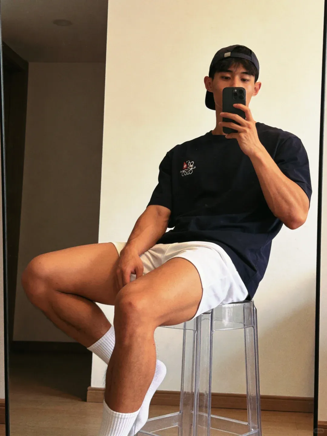 最后再来一张对镜自拍,黑皮配白袜,肌肉搭少年感,硬汉与软萌无缝切换,这样的宝藏小哥谁能拒绝?