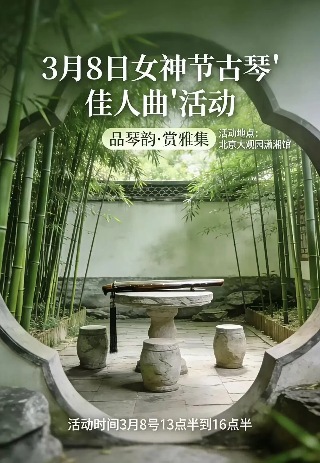 这个三八女神节,不赴热闹,只寻风雅;不追浮华,只修本心。138元,换一下午红楼意境中的诗意时光,学一首专属佳人的经典琴曲,留一段独一无二的园林雅趣。