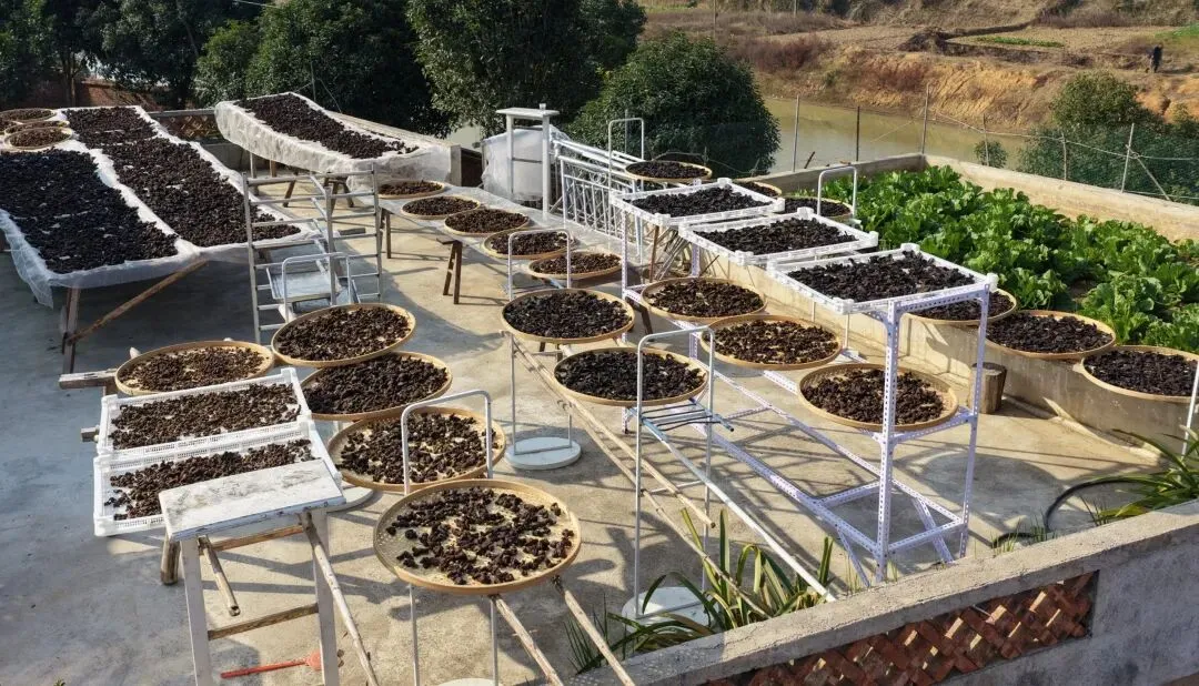 而龙村长做的黄精,遵循古法九蒸九晒——柴火慢蒸,日光晾晒,一遍遍重复,不赶时间,不加东西。