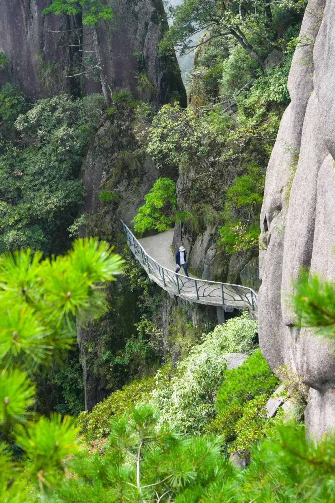三清山的拥有全国海拔最高、长度最长的高空栈道!栈道始建于16年前,靠长绳吊着工人在海拔1600米的悬崖绝壁上施工,建成了一条4000米长的高空栈道。